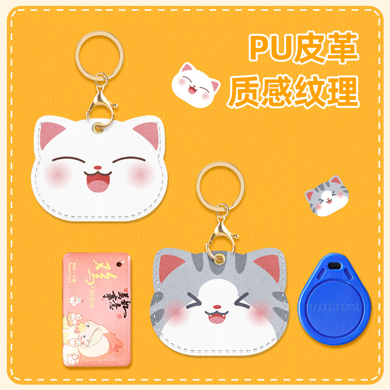 钥匙扣链门禁卡套一体电梯保护套可爱小长方形nfc磁吸电动车水滴形圆形迷你小区门卡公交真皮卡通电子锁感应