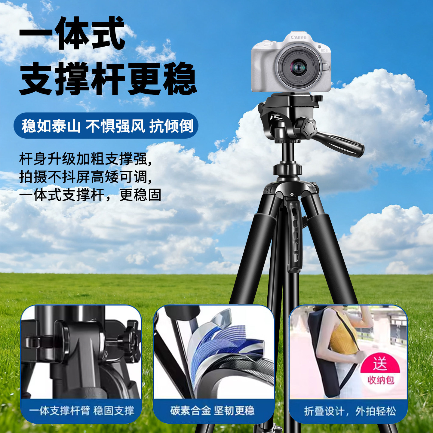 适用于佳能r50三脚架户外旅游拍照单反摄影拍摄微单三角架专业适用索尼富士尼康落地便携式360度旋转2025新款