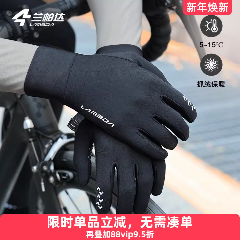 兰帕达保暖骑行手套全指抓绒秋冬季触屏防滑公路山地自行车男女