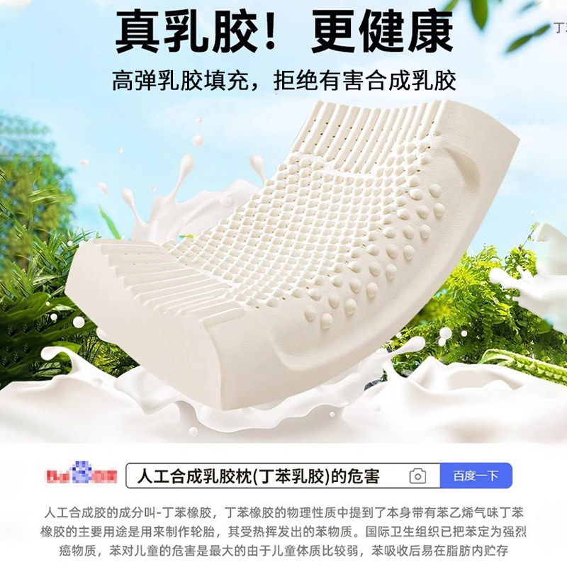 正品天然乳胶枕头护颈椎助睡眠睡觉专用硅胶橡胶枕芯一对家用