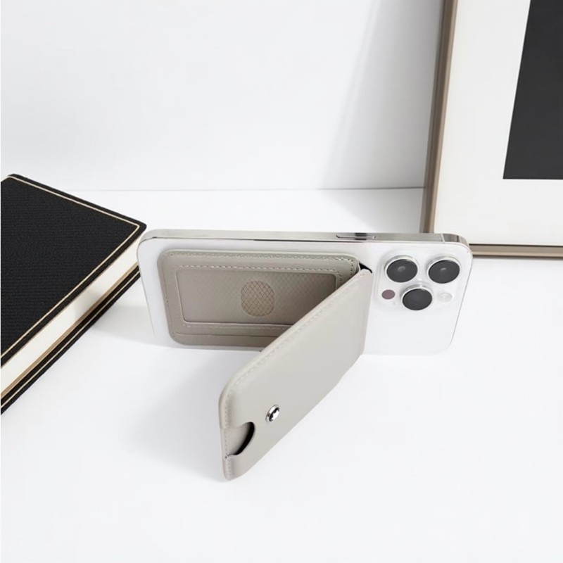 MagSafe磁吸卡包适用iphone苹果17Air/16/15plus手机壳14promax公交卡13真皮革折叠门禁卡套桌面支架翻盖背贴