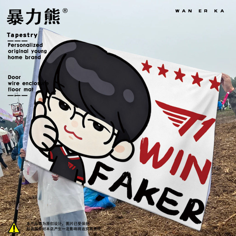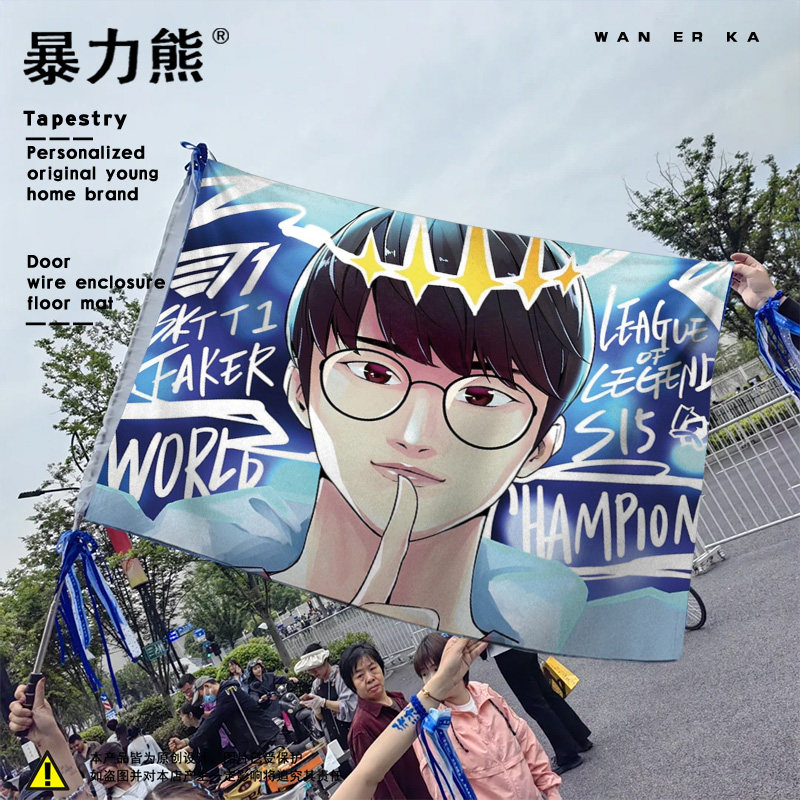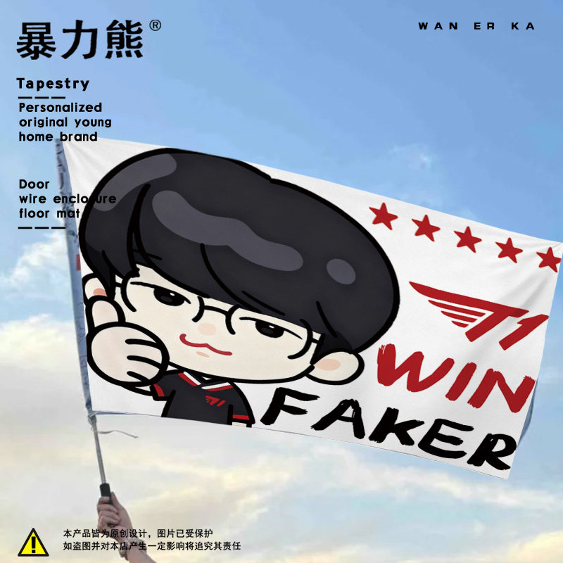 2025英雄联盟全球总决赛S15赛季t1战队旗帜faker应援战旗三角巾定制旗帜粉丝助威应援周边旗帜电竞房装饰