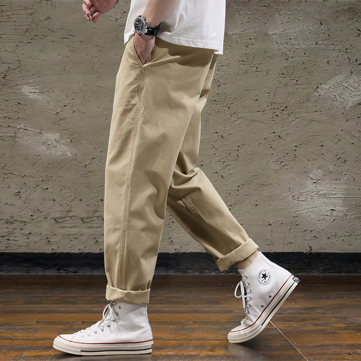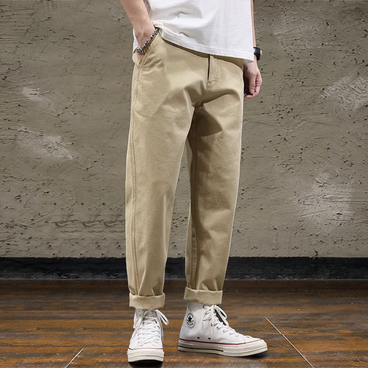唐狮新款秋季休闲长裤男款美式复古宽松小脚裤子痞帅百搭潮流WTD