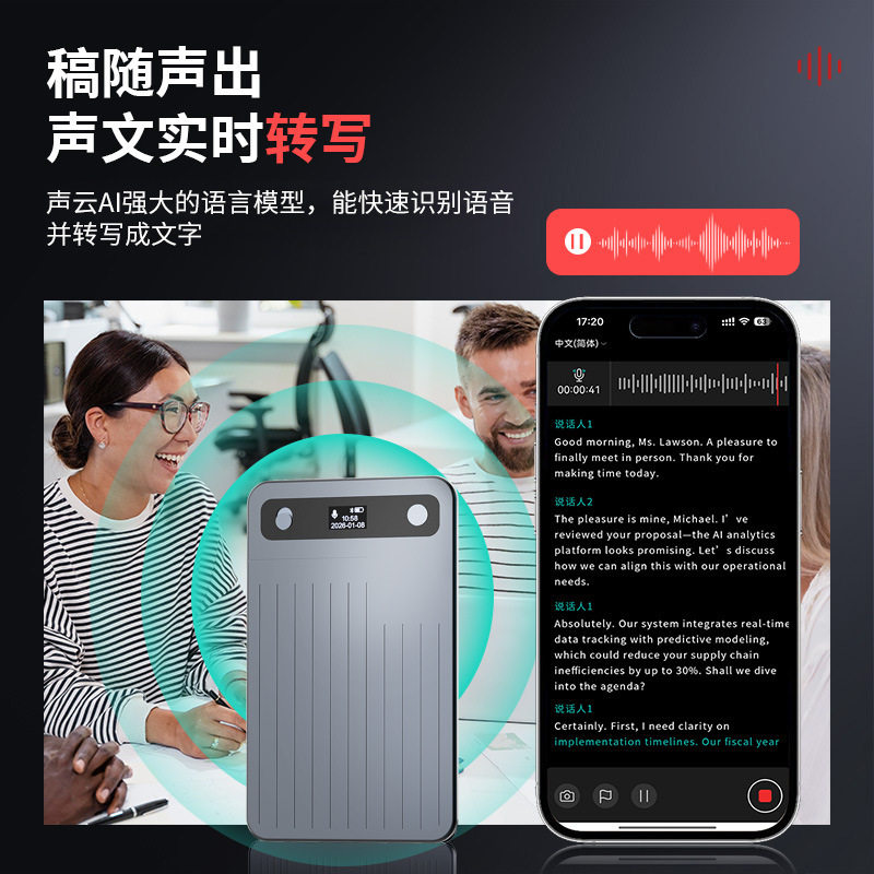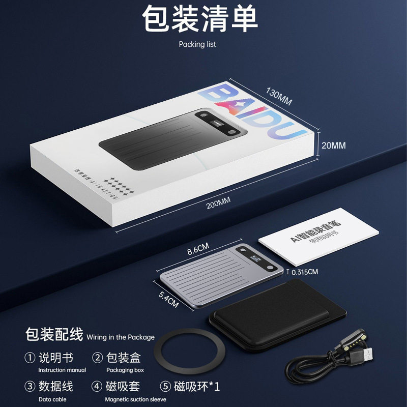 跨境爆款AI卡片录音笔 同声传译自带磁吸智能总结思维导图录音机