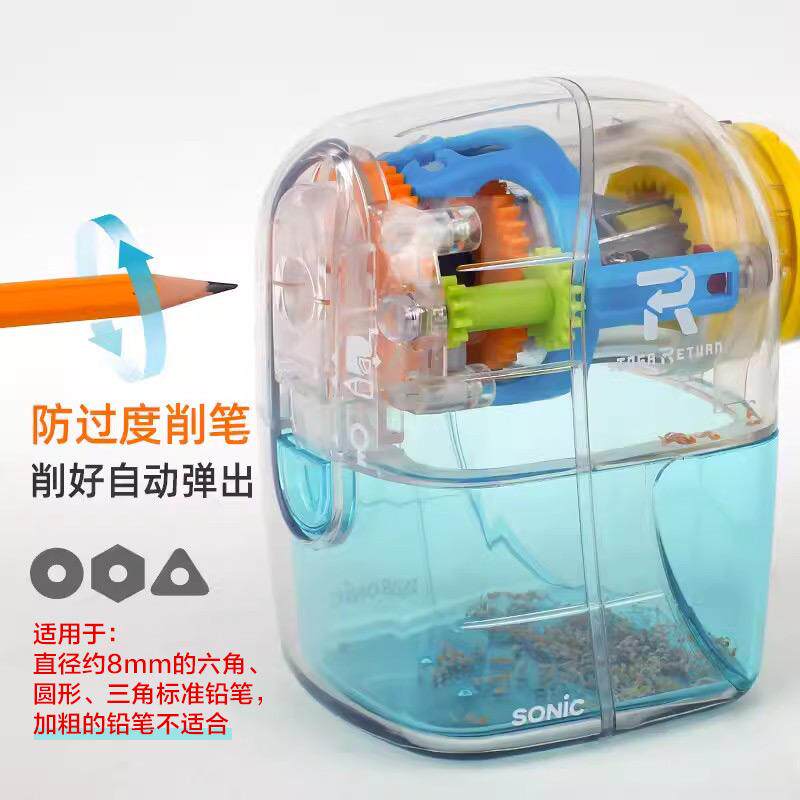 索尼克削笔机SONIC透明手摇削笔器削好自动弹出转笔刀限量版笔刀