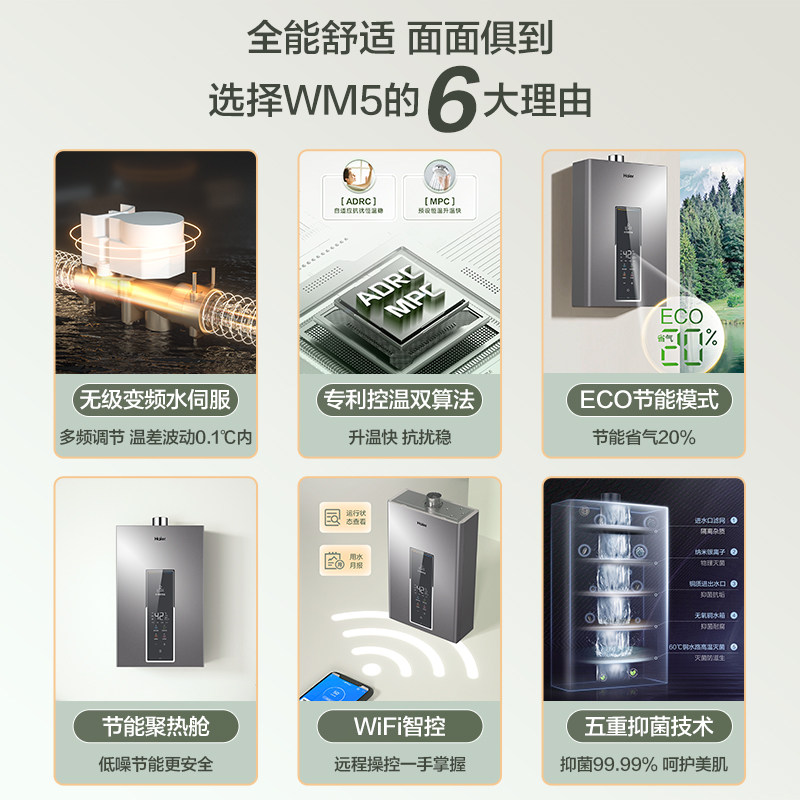 海尔燃气热水器天然气13L16升家用水伺服恒温款WM5