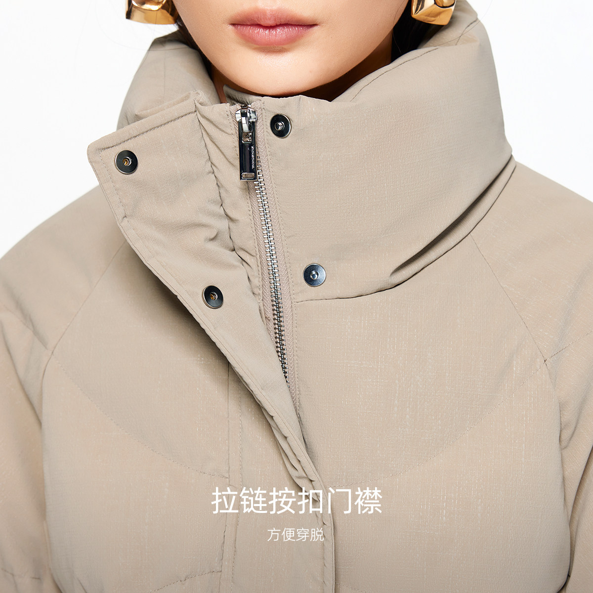 【鞠婧祎同款】鸭鸭2025年冬新款百搭短款女士纯色立领羽绒服外套