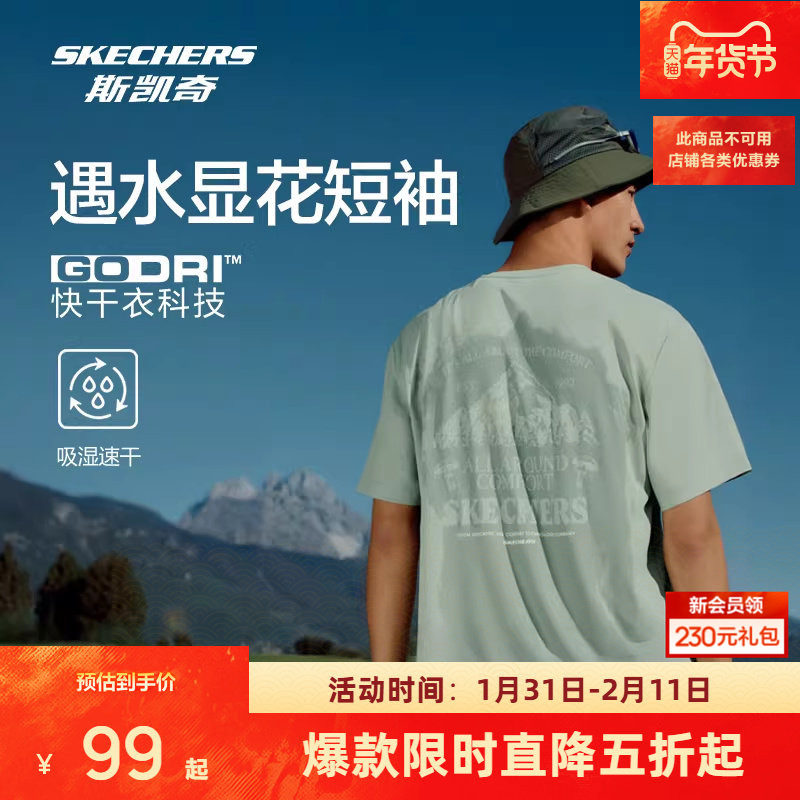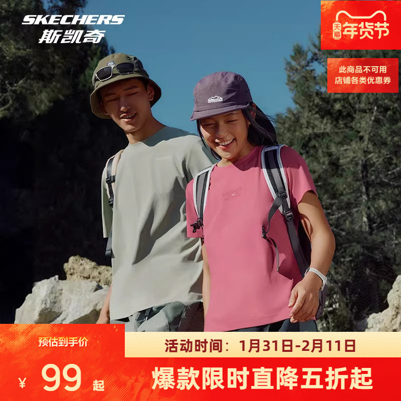 斯凯奇凉感速干男女同款T恤舒适休闲户外潮流印花设计短袖
