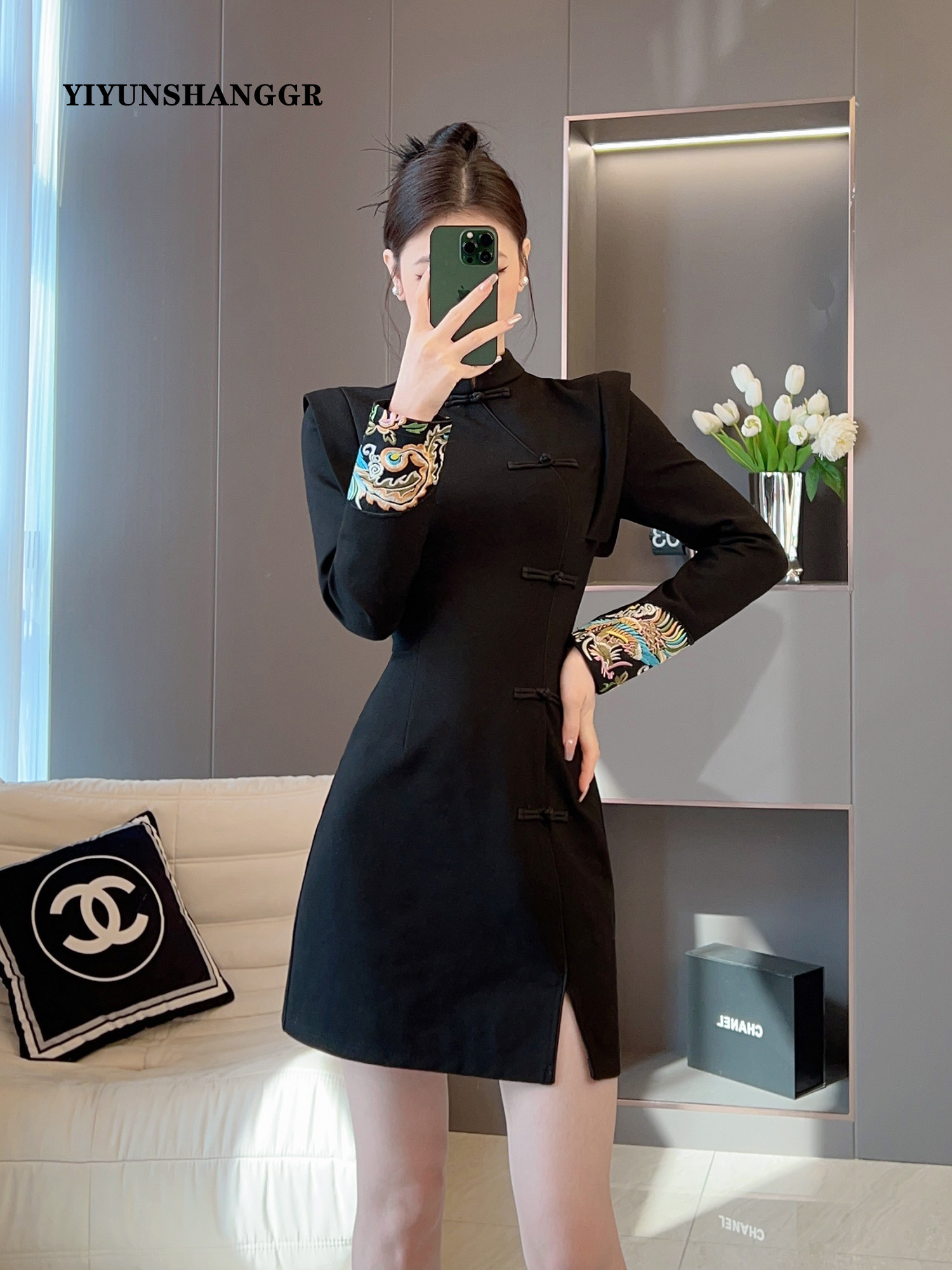 新中式国风改良旗袍连衣裙女冬季新款气质高级感重工刺绣礼服裙子
