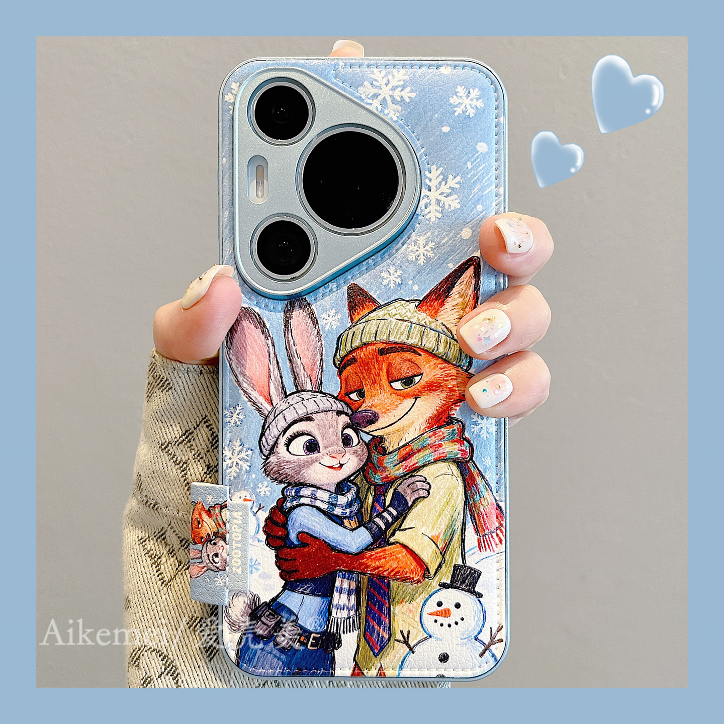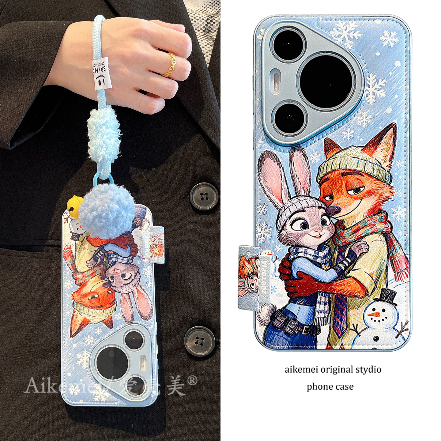 适用华为pura80pro+手机壳卡通油画雪花相拥朱迪尼克Pura70ultra毛球铃铛挂绳p80鼓包皮纹mate70pro+硅胶防摔