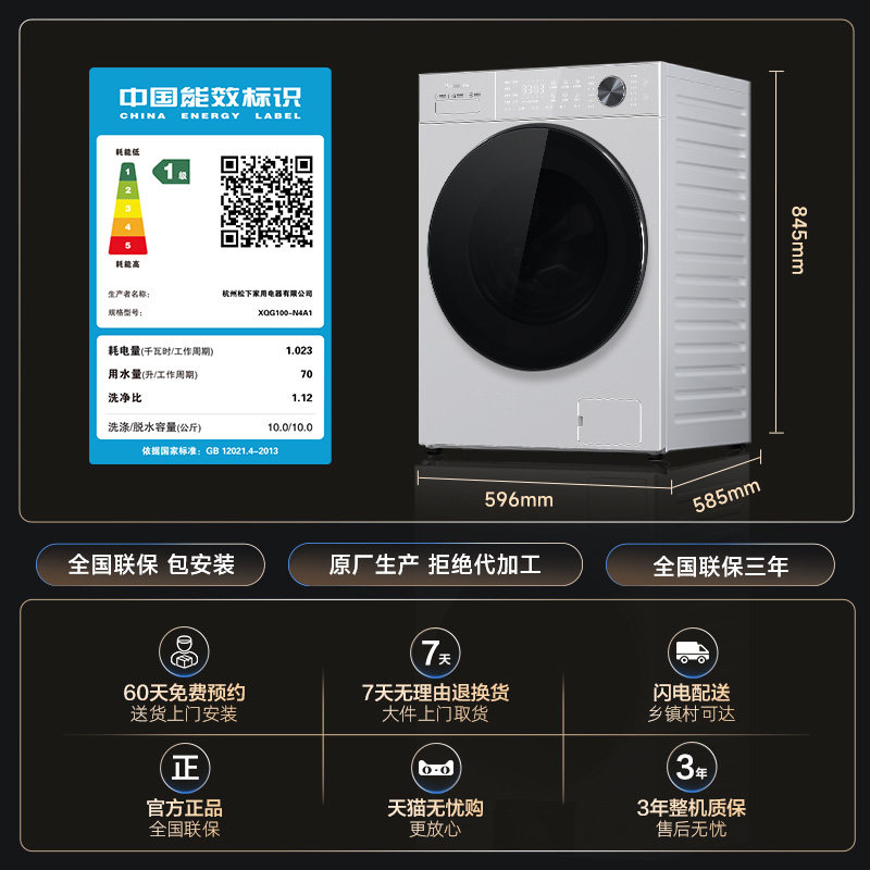 【李佳琦年货补给专场】松下大白Pro滚筒洗衣机10KG家用变频除毛