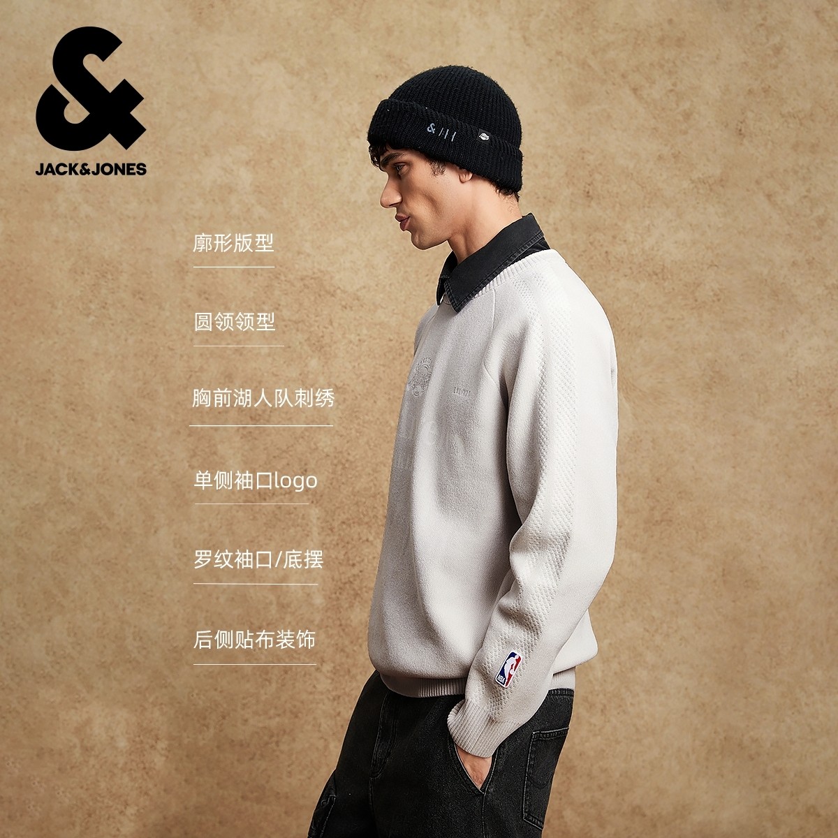 杰克琼斯NBA联名湖人队2025年新款男装冬季毛衣针织衫纯色上衣