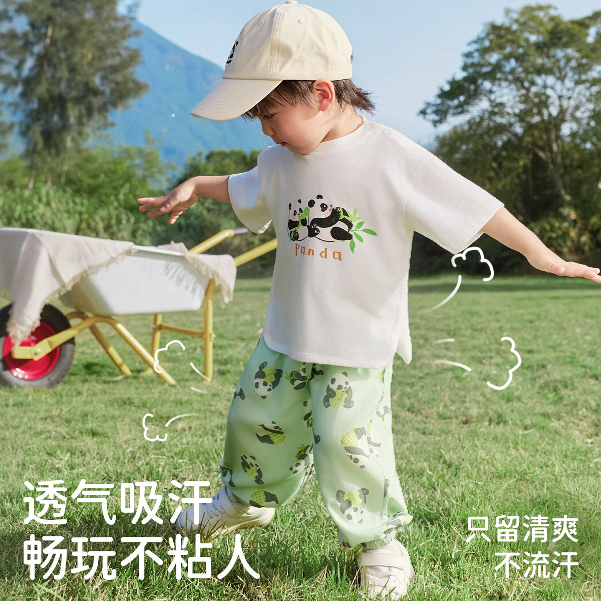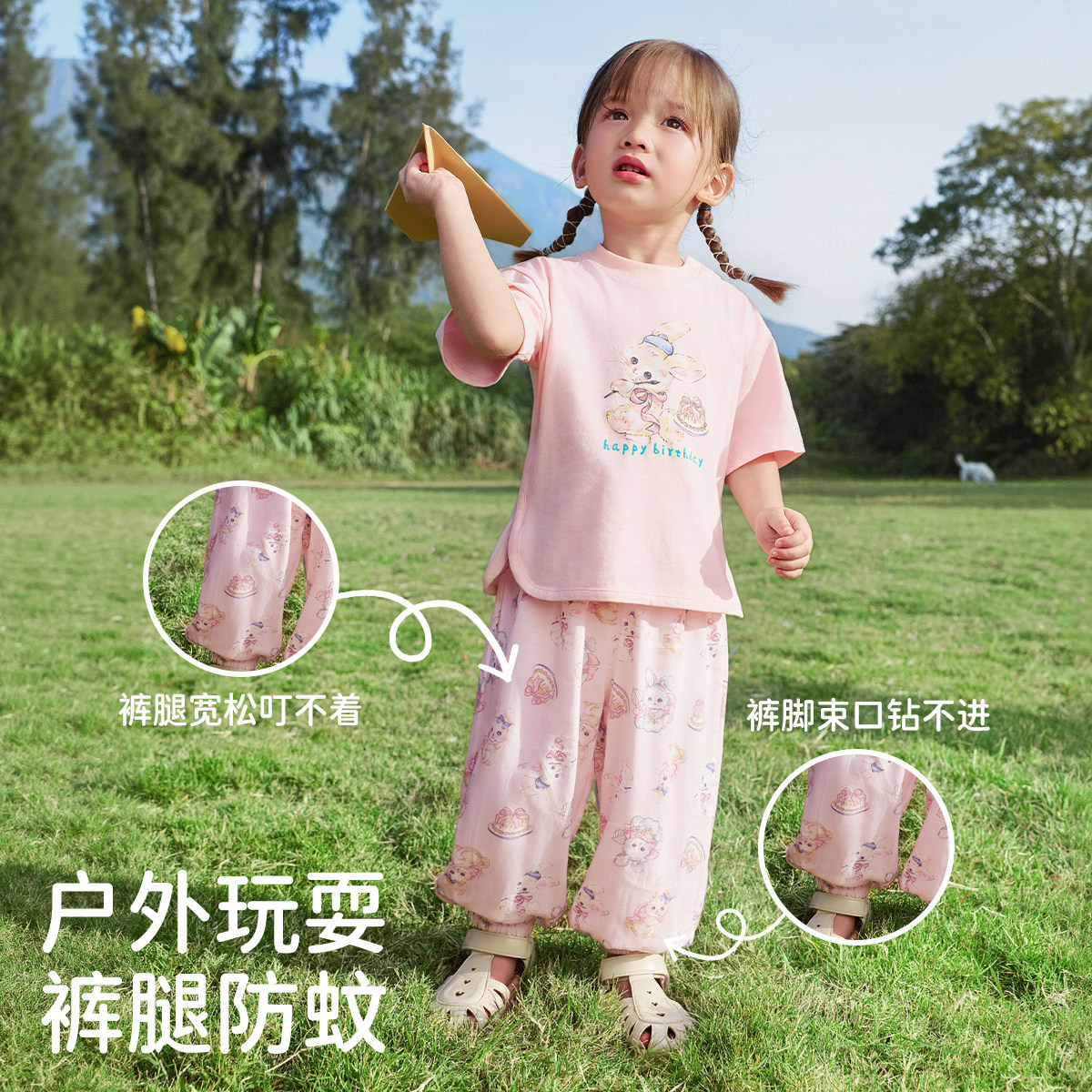婧麒宝宝短袖套装纯棉男女童婴儿夏装长裤儿童夏季薄款分体外出服