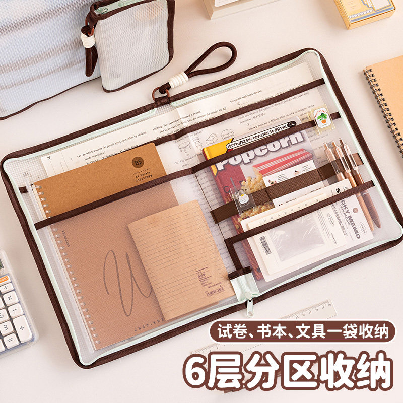 晨光文具学科科目分类袋小学生文件袋拉链式试卷收纳袋透明网纱双层大容量书袋作业资料a4考试专用袋票据产检