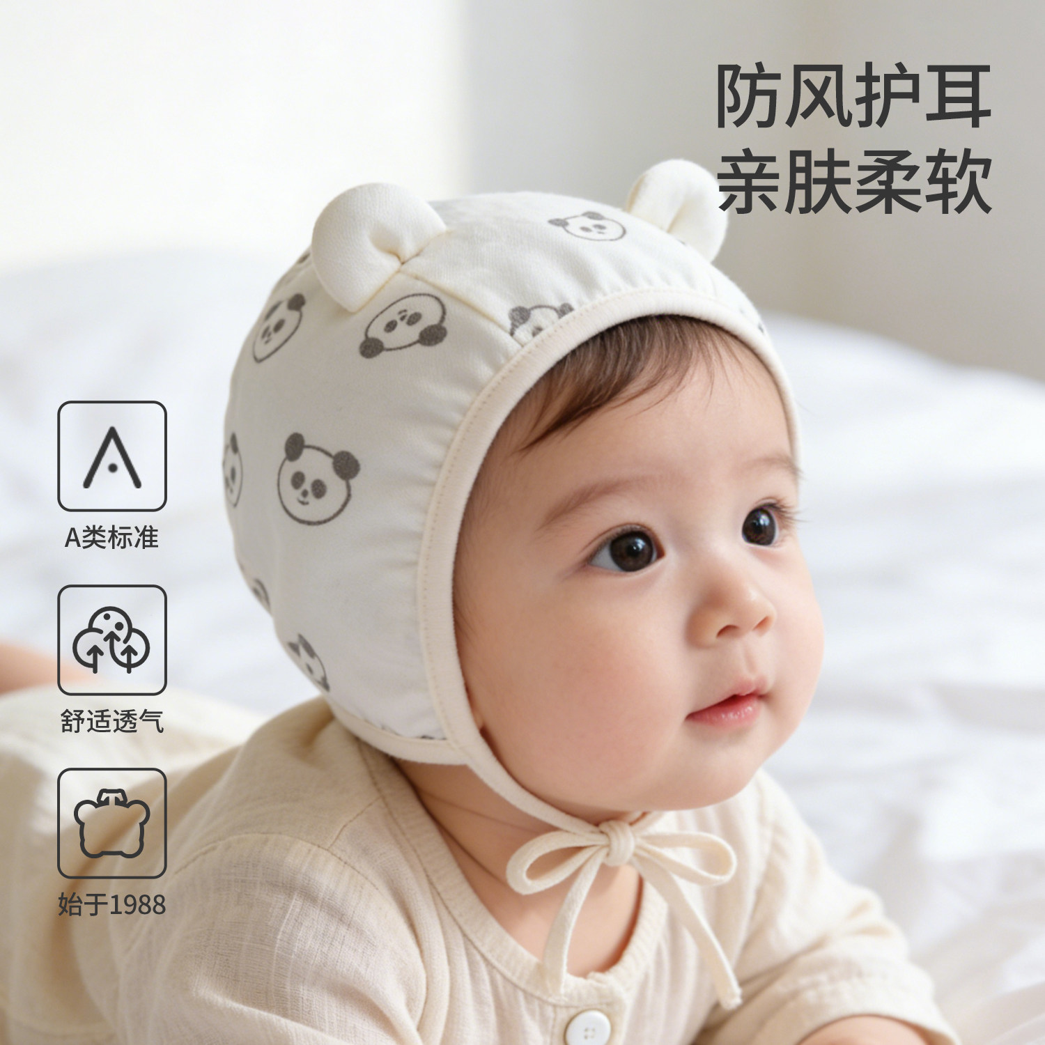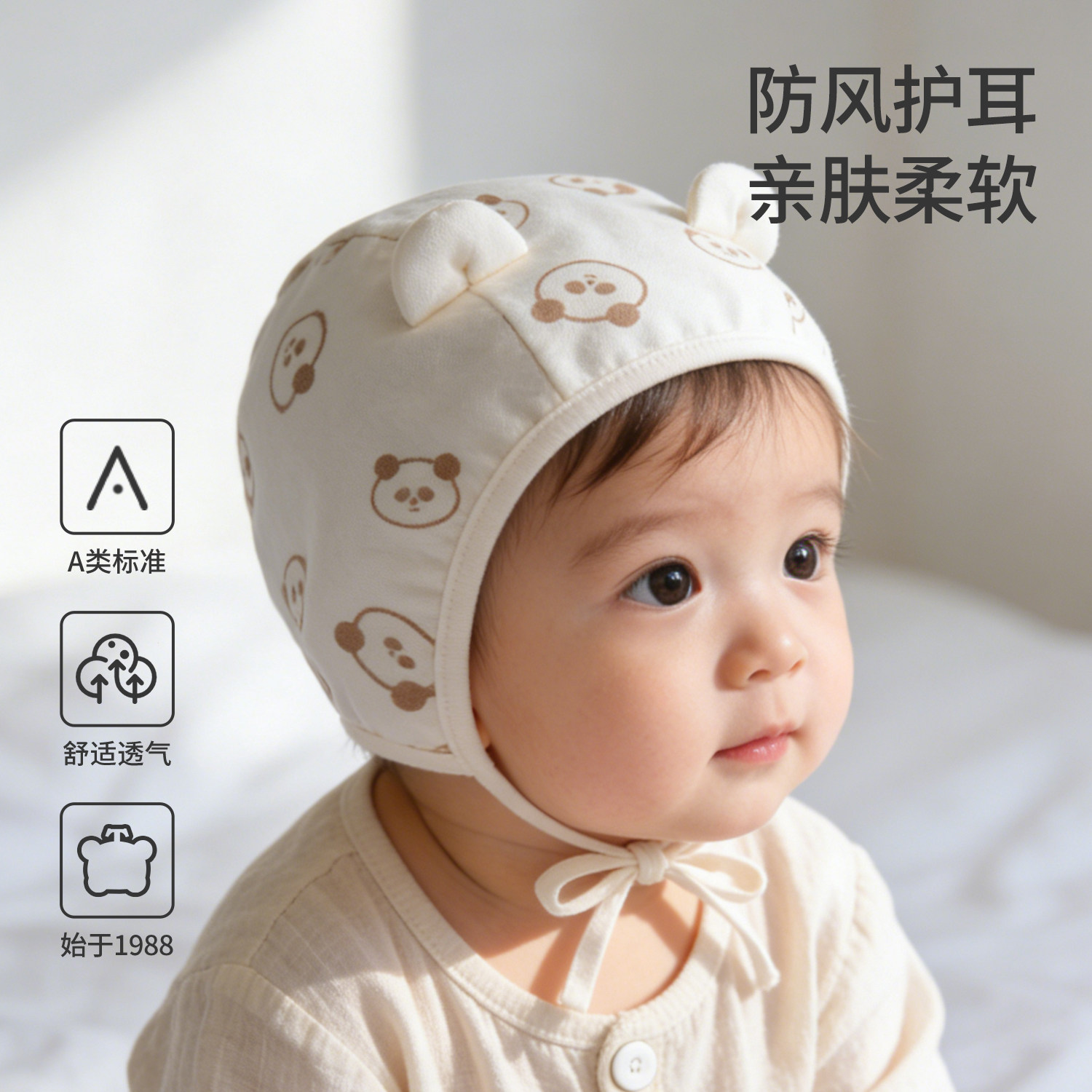 婴儿帽子春秋款新生儿护耳帽开春0到3个月宝宝胎帽小月龄护囟门帽