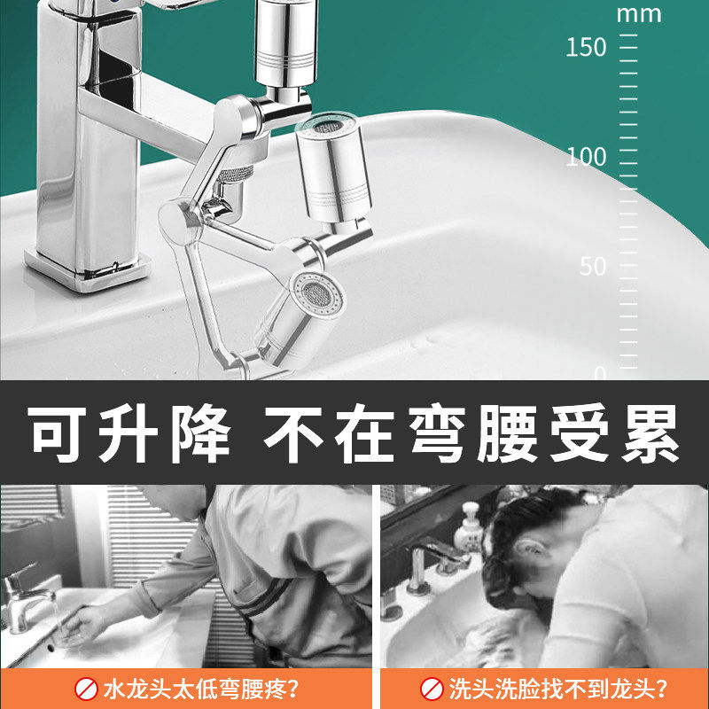 机械臂万向水龙头延伸器防溅可旋转洗脸盆神器厨房折叠面盆外丝