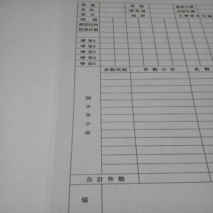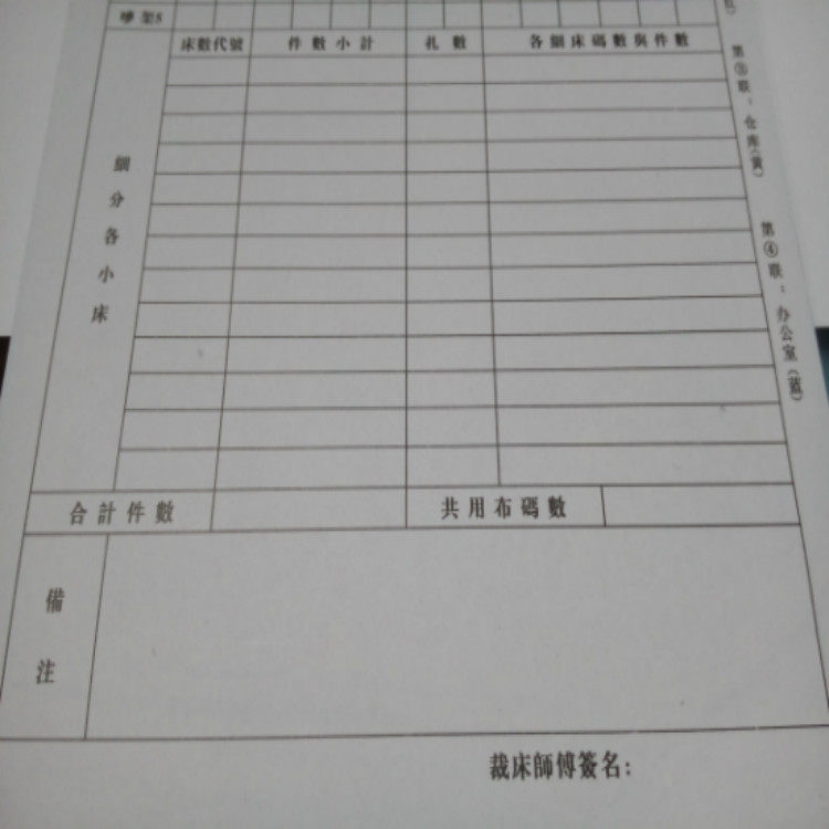 裁床明细表 车间生产记录单 制衣厂表格 工卡本 服装布料裁床制单