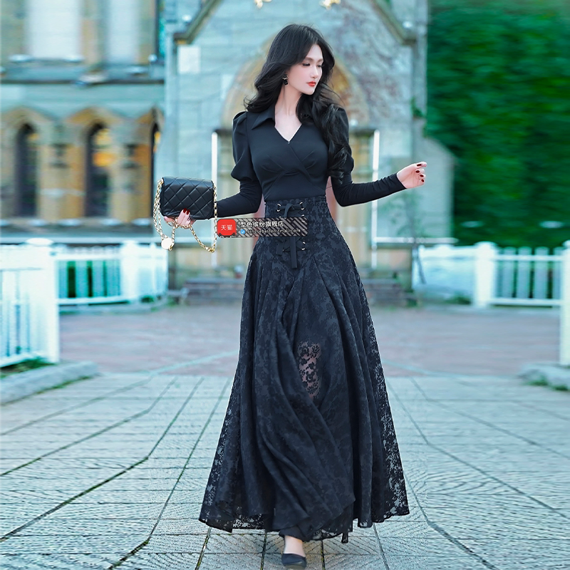 百搭防走光蕾丝设计感蕾丝小屁帘女秋冬叠穿松紧腰中短款打底裙女