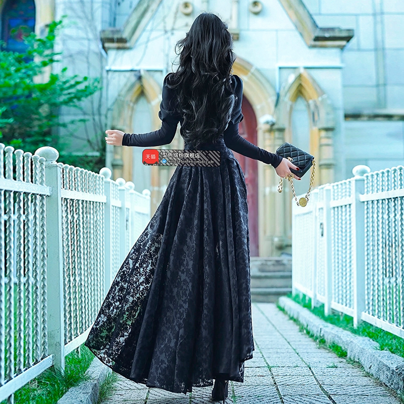 大码黑色丝滑垂感醋酸缎面半身裙女胖妹妹高腰mm显瘦鱼尾a字长裙
