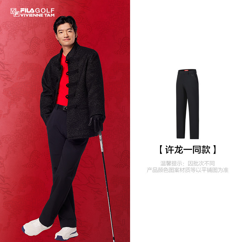 许龙一同款FILA斐乐高尔夫VIVIENNE TAM新年联名男保暖梭织长裤