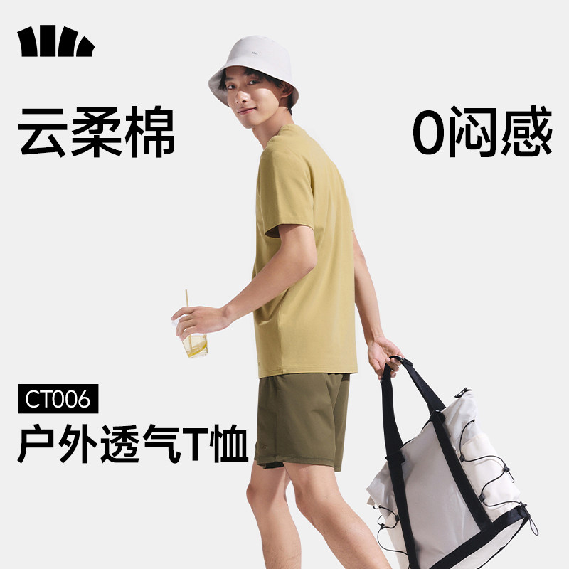 蕉下男士透气T恤户外圆领速干云柔棉质0闷感春夏休闲运动短袖上衣