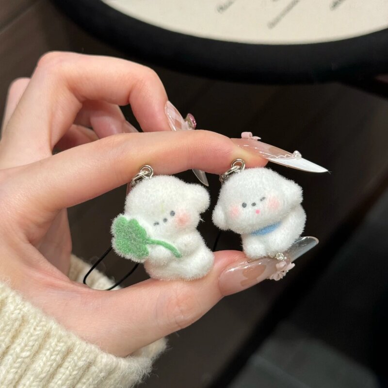 超萌四叶草小狗挂件卡通植绒手机链钥匙扣包包挂饰送闺蜜礼物配饰