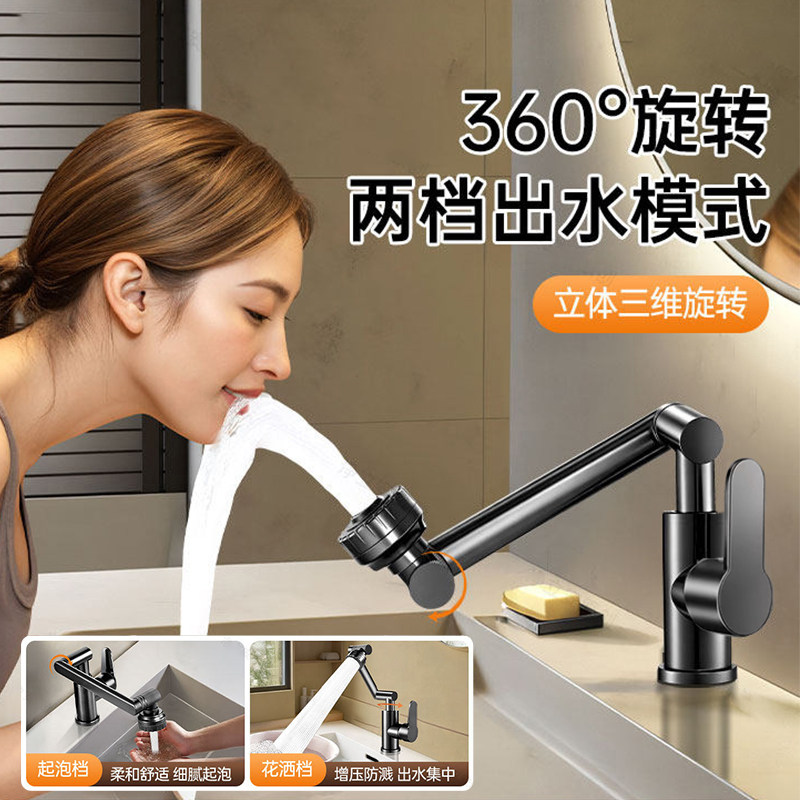 卫生间洗手盆水龙头洗脸盆面盆冷热两用单冷家用折叠全铜陶瓷增压