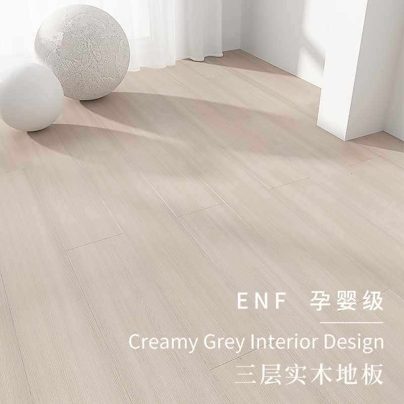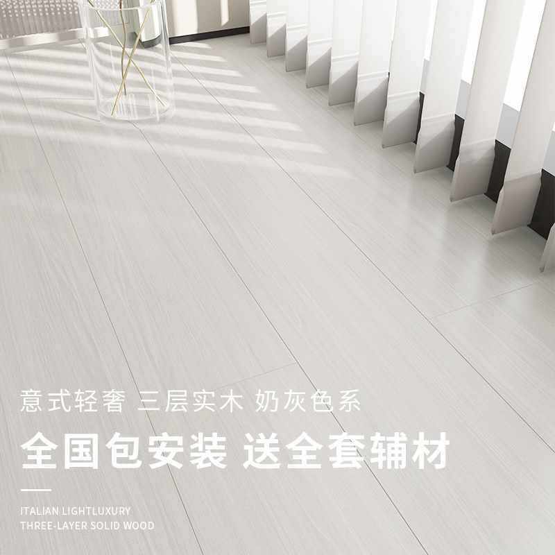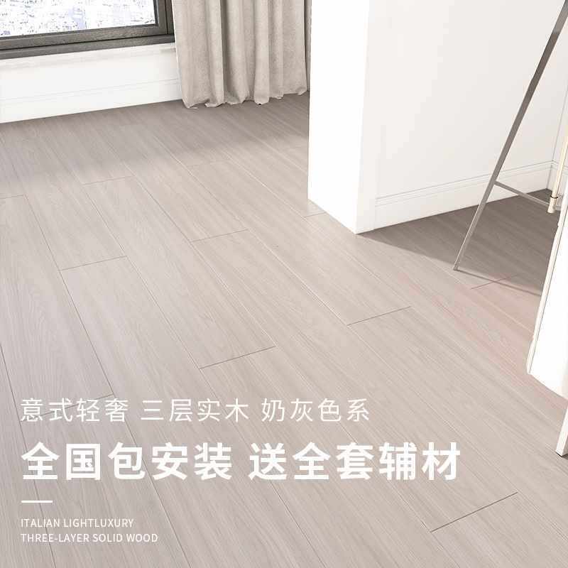 ?奶油风灰色木地板家用新三层实木多层复合极简轻奢包安装厂家直