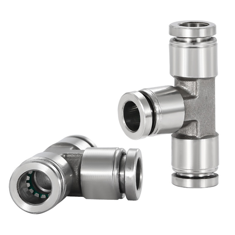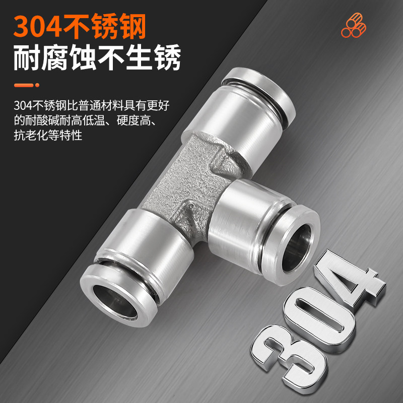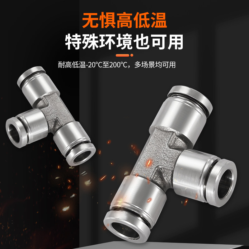 304不锈钢气管快速接头快插气动快接高压气嘴T型三通对接元件PE