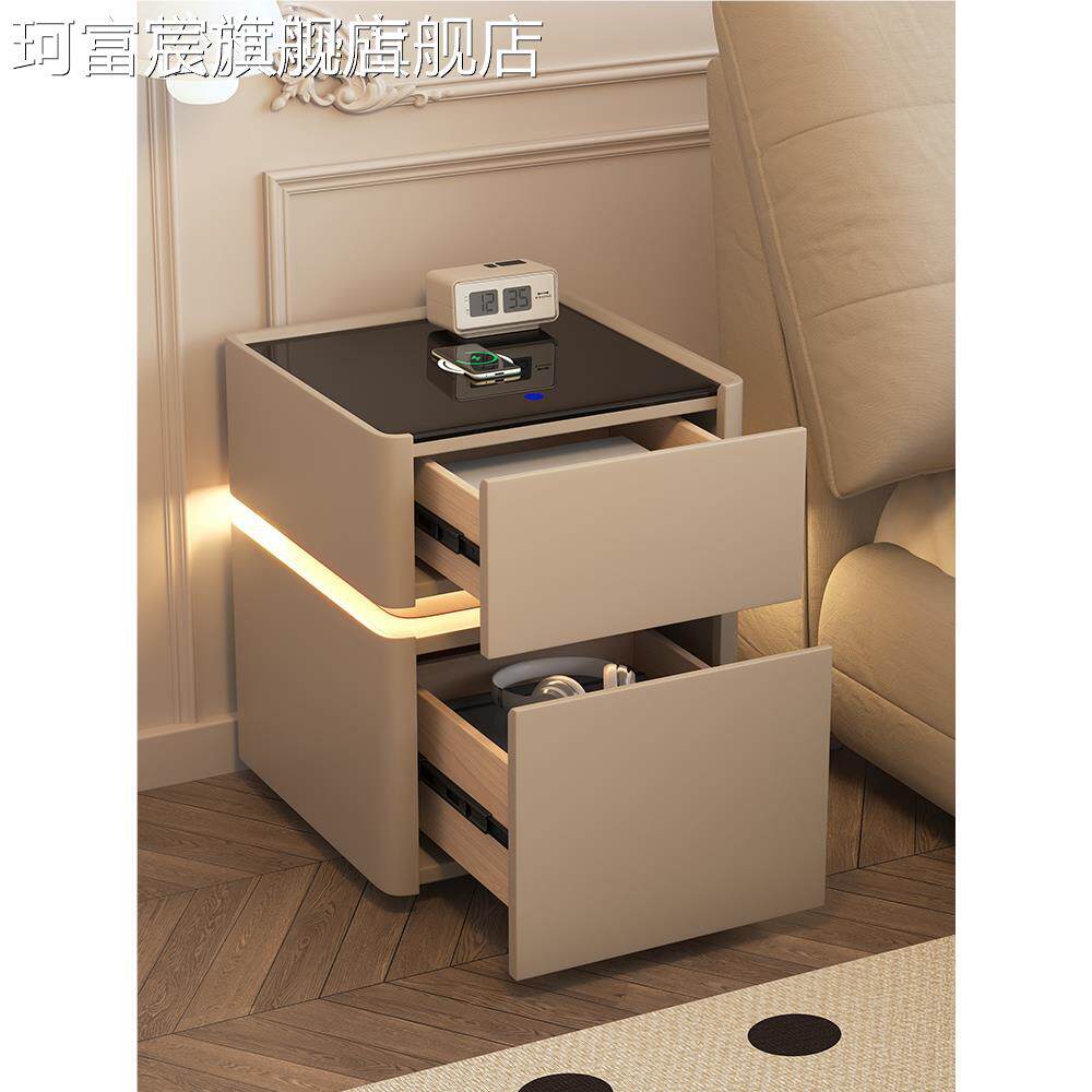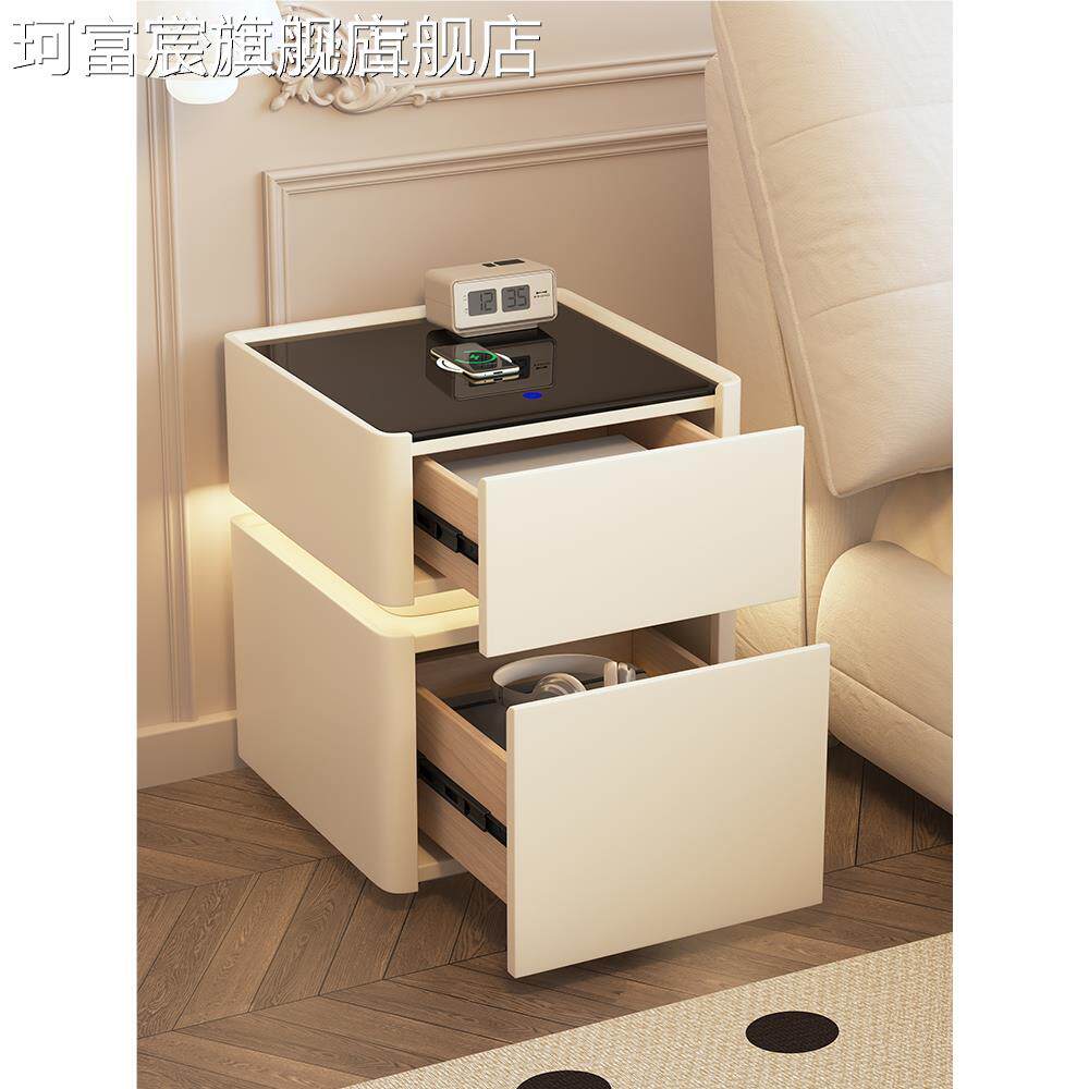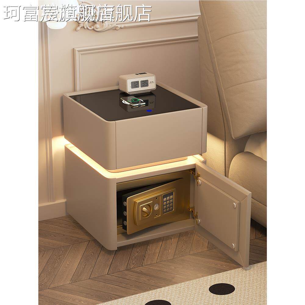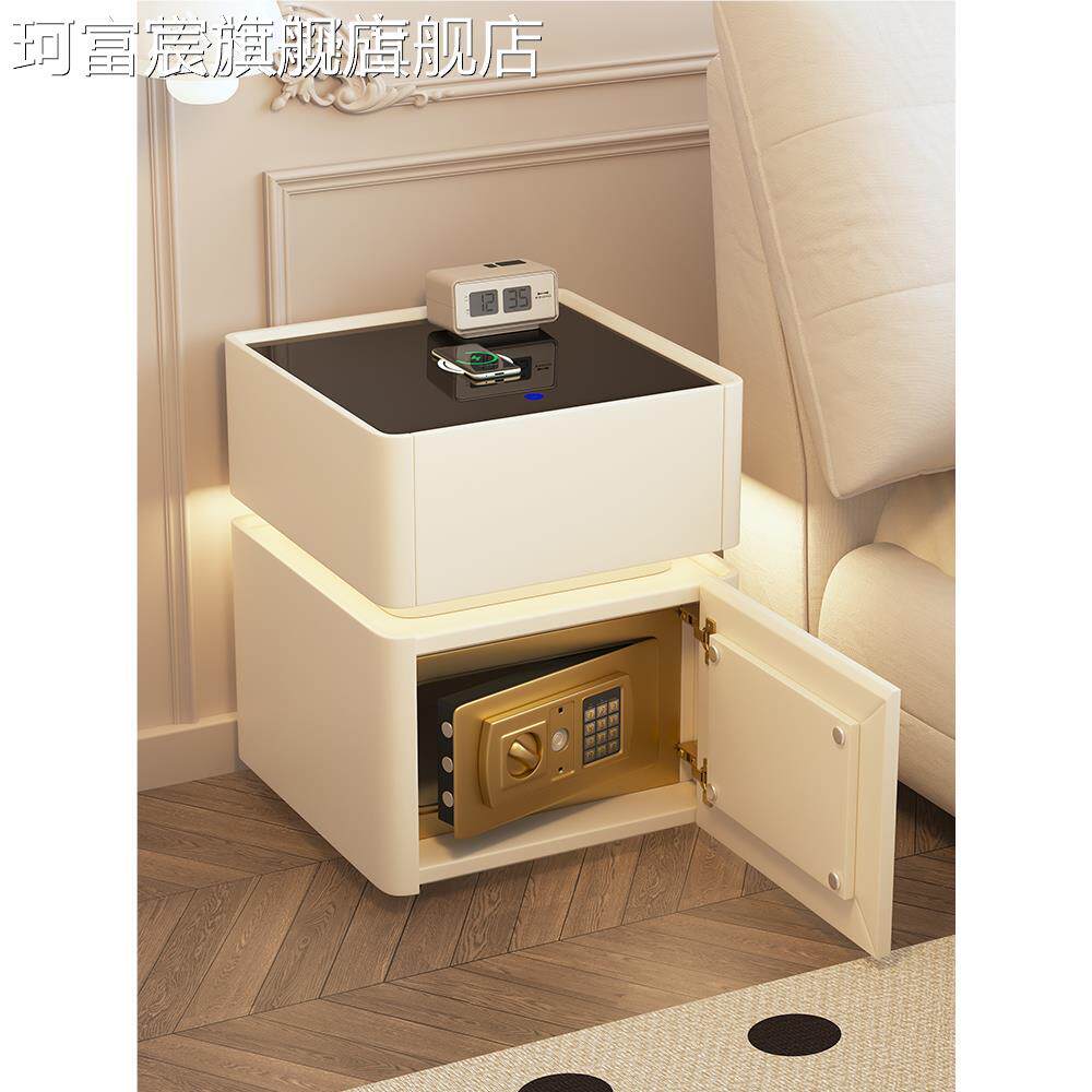 珂富宸智能 床 头 柜 保险 箱一体简约现代多功能无线充电密码锁 床 边保险 柜 子摆件饰品床笠拉车盖布
