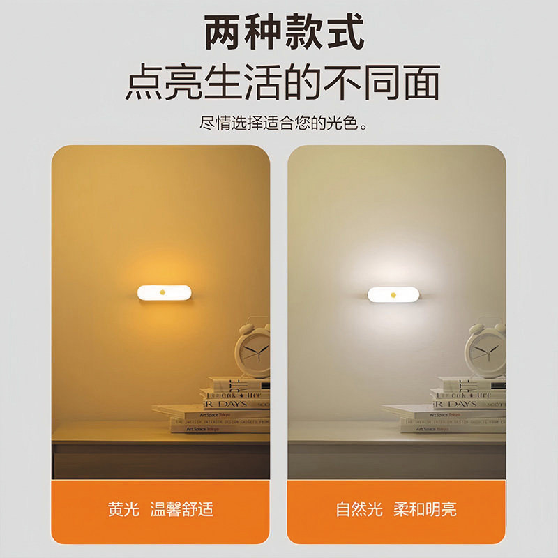 自动人体感应灯起夜卧室婴儿喂奶护眼壁侧发光过道充电小夜灯地脚