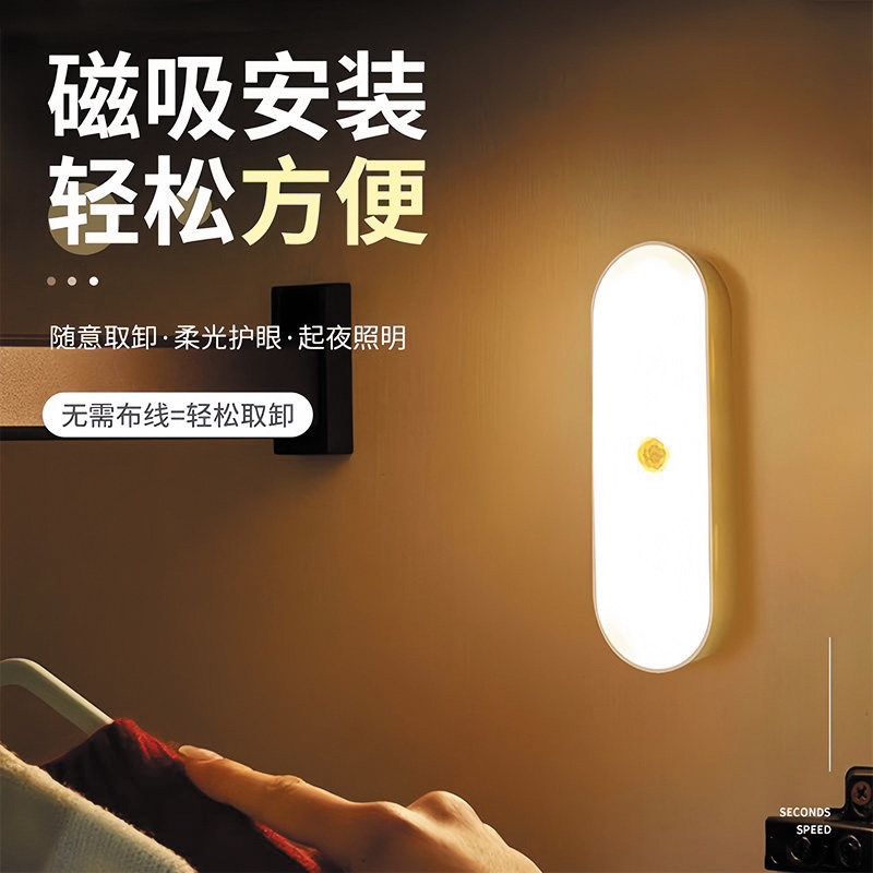 人体感应小夜灯智能充电式感应灯家用无线过道墙壁起夜楼道喂奶灯