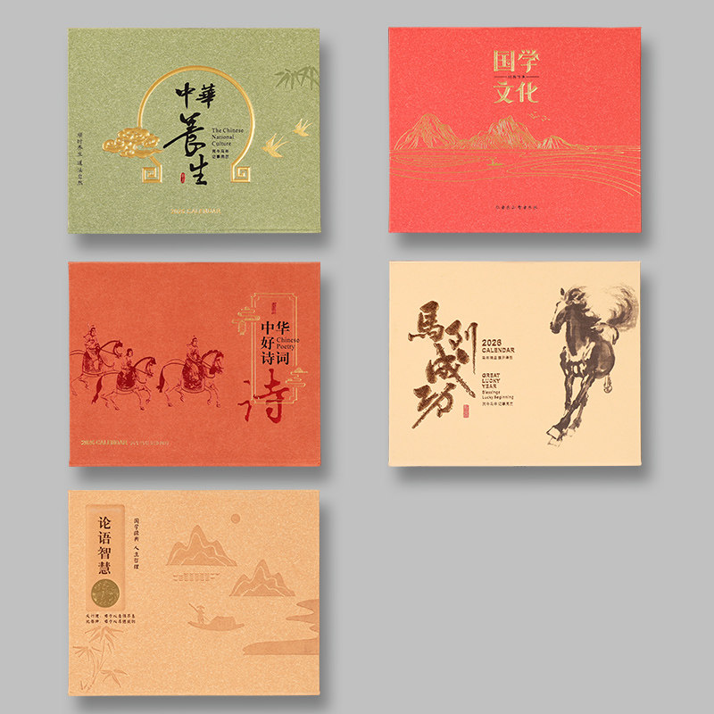 台历2026年新款日历桌面摆件办公室中国风马年创意翻页工位工作打卡计划本礼盒企业广告红色喜庆礼品月历定制