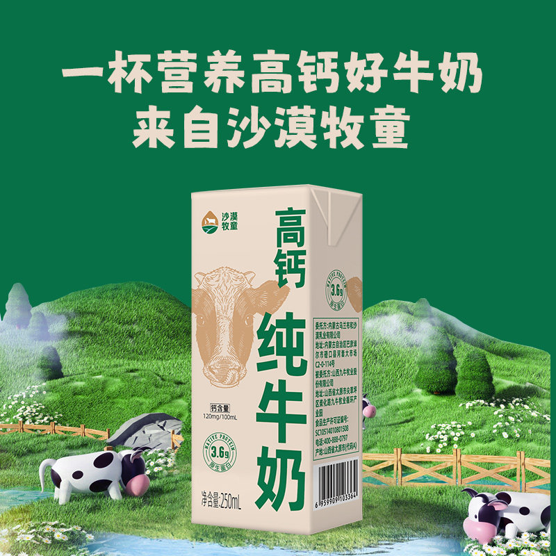 12月产 3.6g高钙全脂纯牛奶营养早餐250ml*24盒