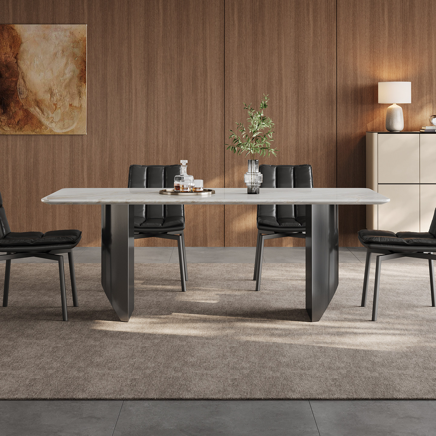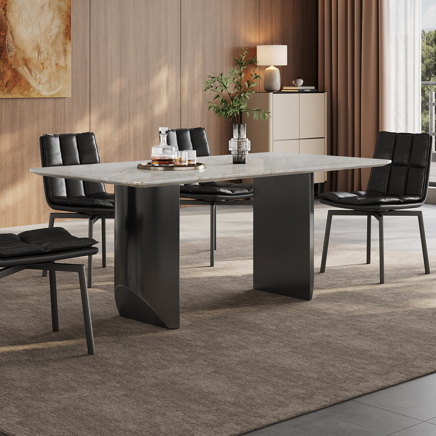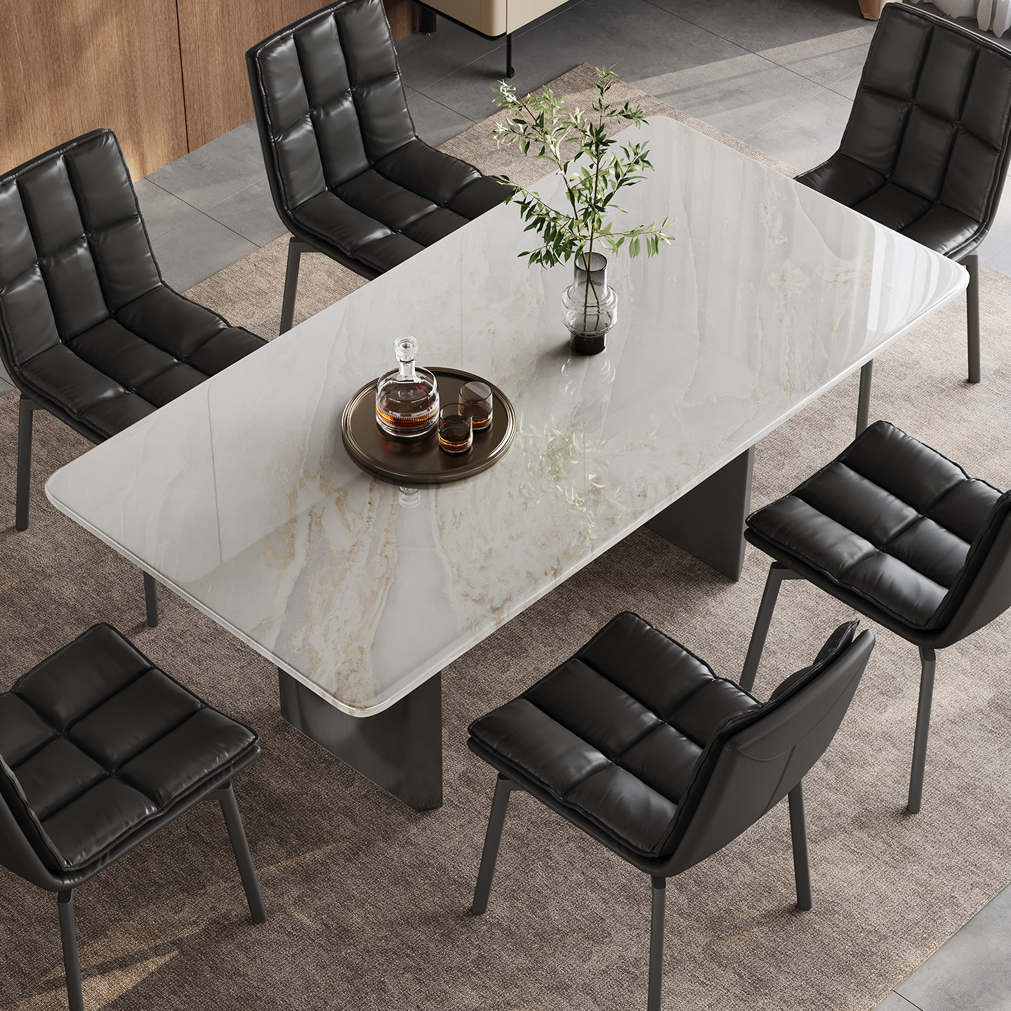 天然大理石餐桌长方形家用高级小户型意式轻奢皇家白玉大理石餐桌