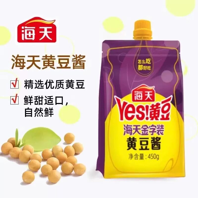 海天金字装黄豆酱450g下饭酱拌饭拌面蘸料调味料瓶装家用酱香大豆