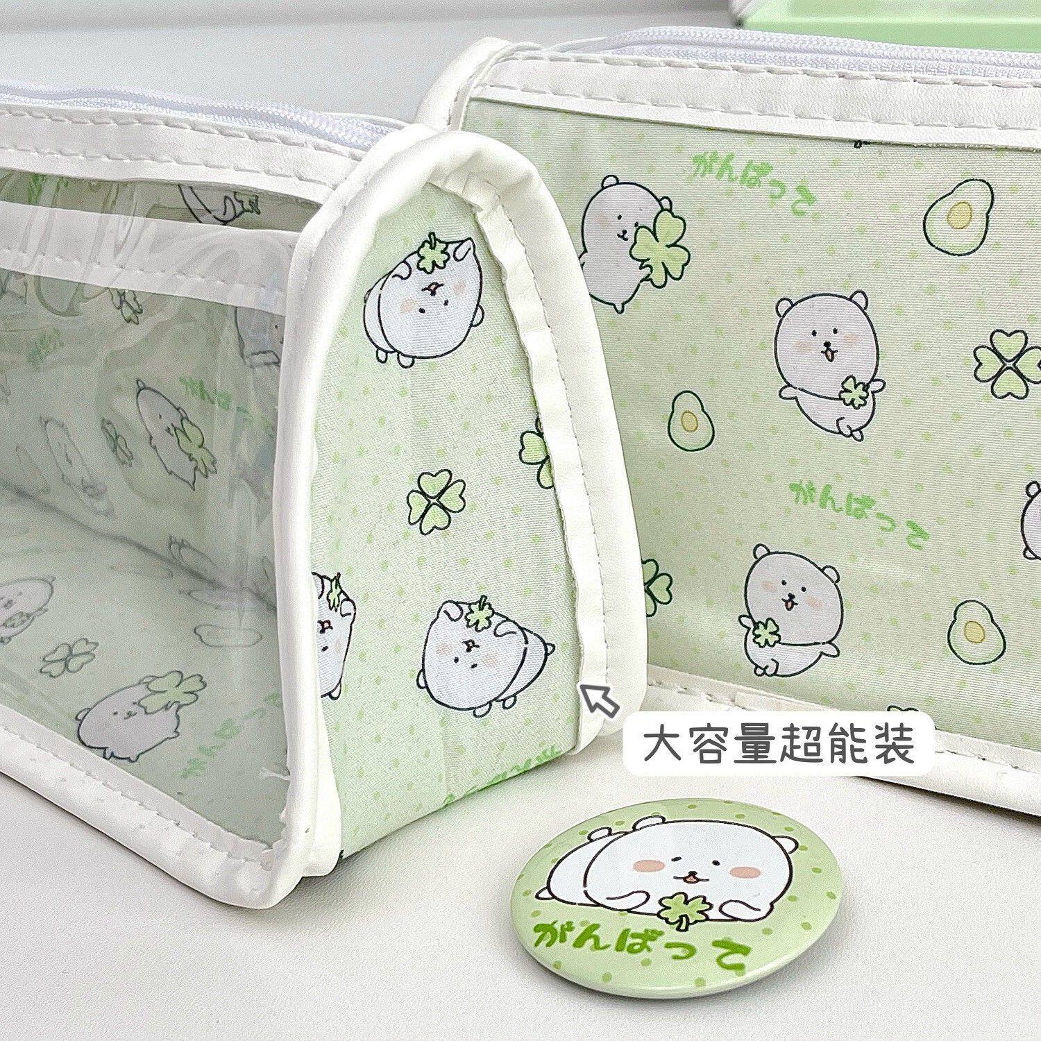 自嘲熊双层透明笔袋ins风可爱高颜值大容量防水pvc文具学生收纳袋
