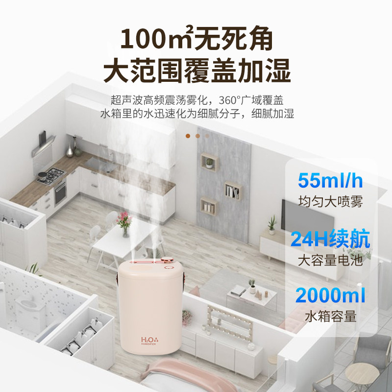 2026新款无线加湿器家用静音卧室床头usb充电大雾量喷雾化器孕妇婴儿办公室桌面宿舍学生女生礼物
