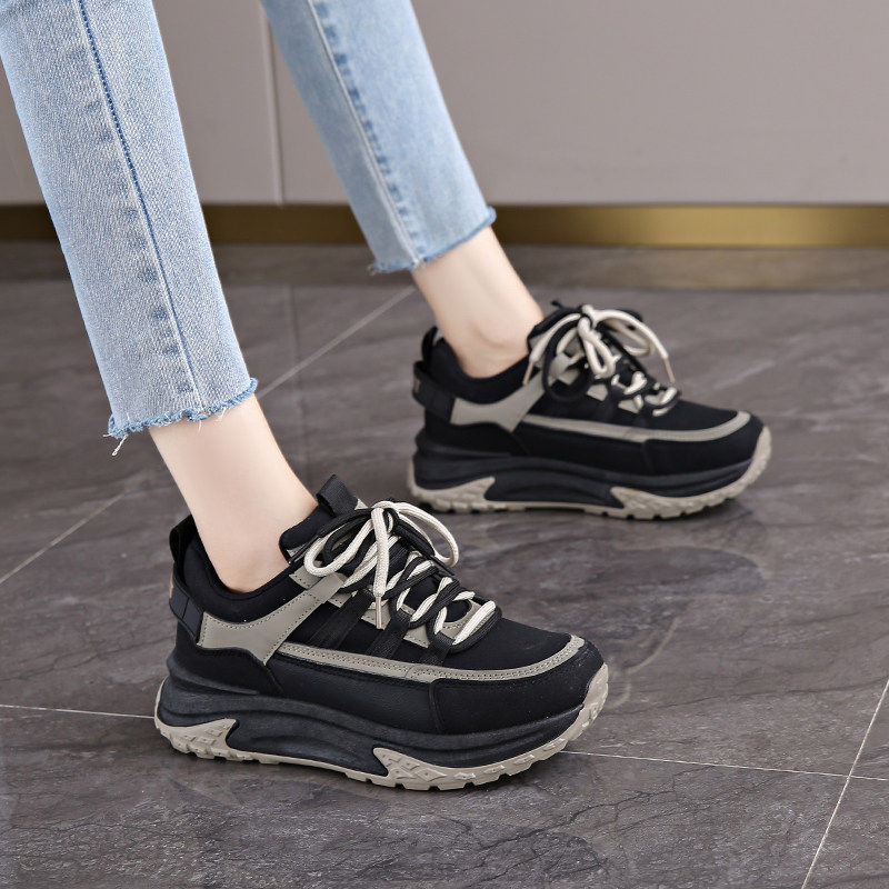 Chio2nd南风 4cm增高磨砂牛皮德训鞋子女款秋冬复古休闲鞋运动鞋