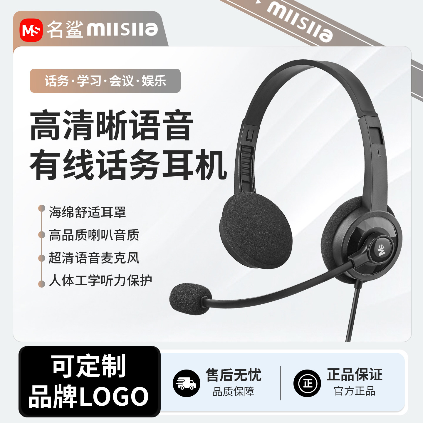 名鲨V25话务员专用耳机客服专用耳麦网课学习电脑USB头戴式耳麦