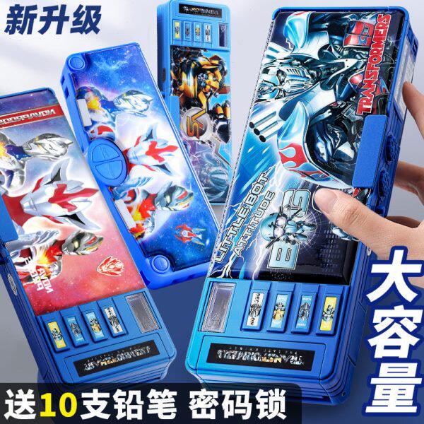 变形金刚密码锁文具盒男孩子多功能高科技儿童铅笔盒男生小学生用