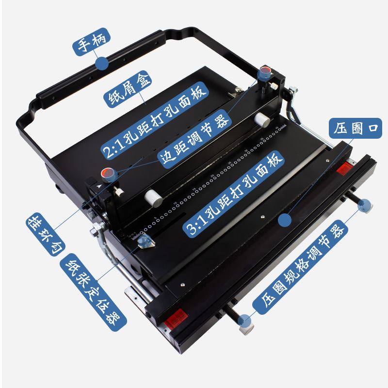 圆孔手动重型铁圈装订机2:1打孔机A4台历挂历34孔双线圈机3:1装订