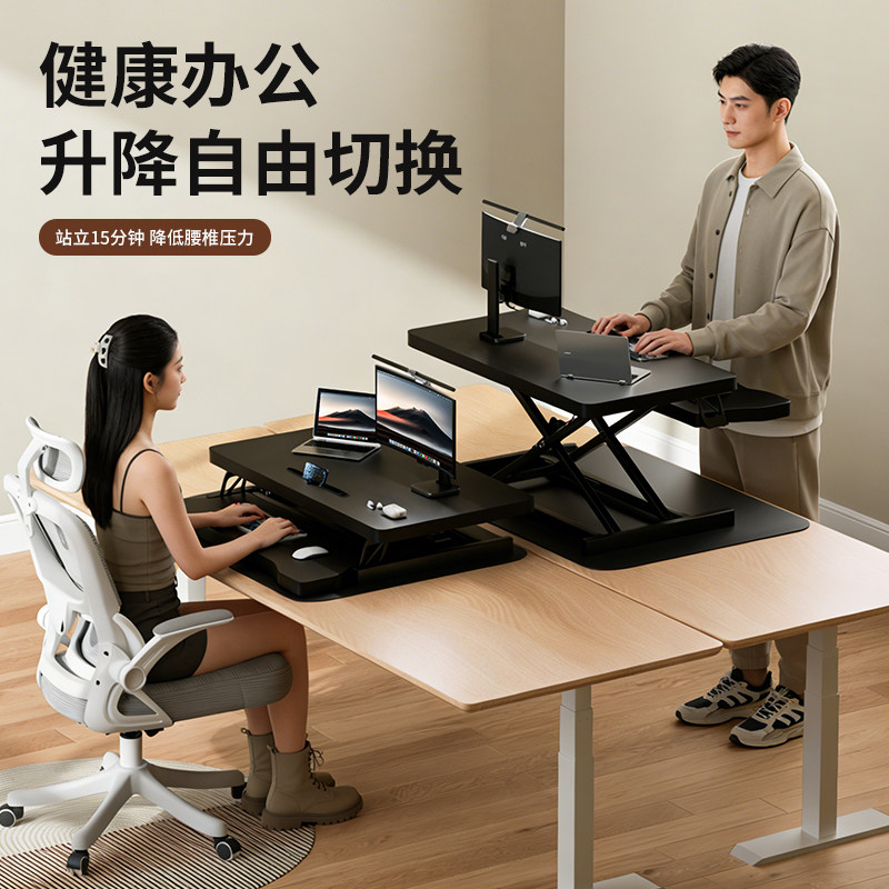 喵同学站立式工作台电脑升降桌站着办公工作电脑桌可升降桌面书桌笔记本电脑增高架台式电脑显示器支架可折叠