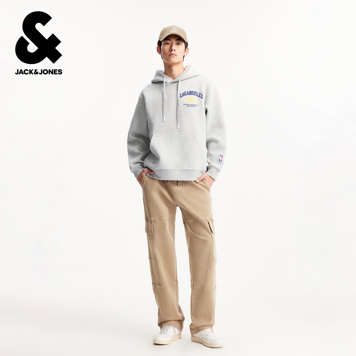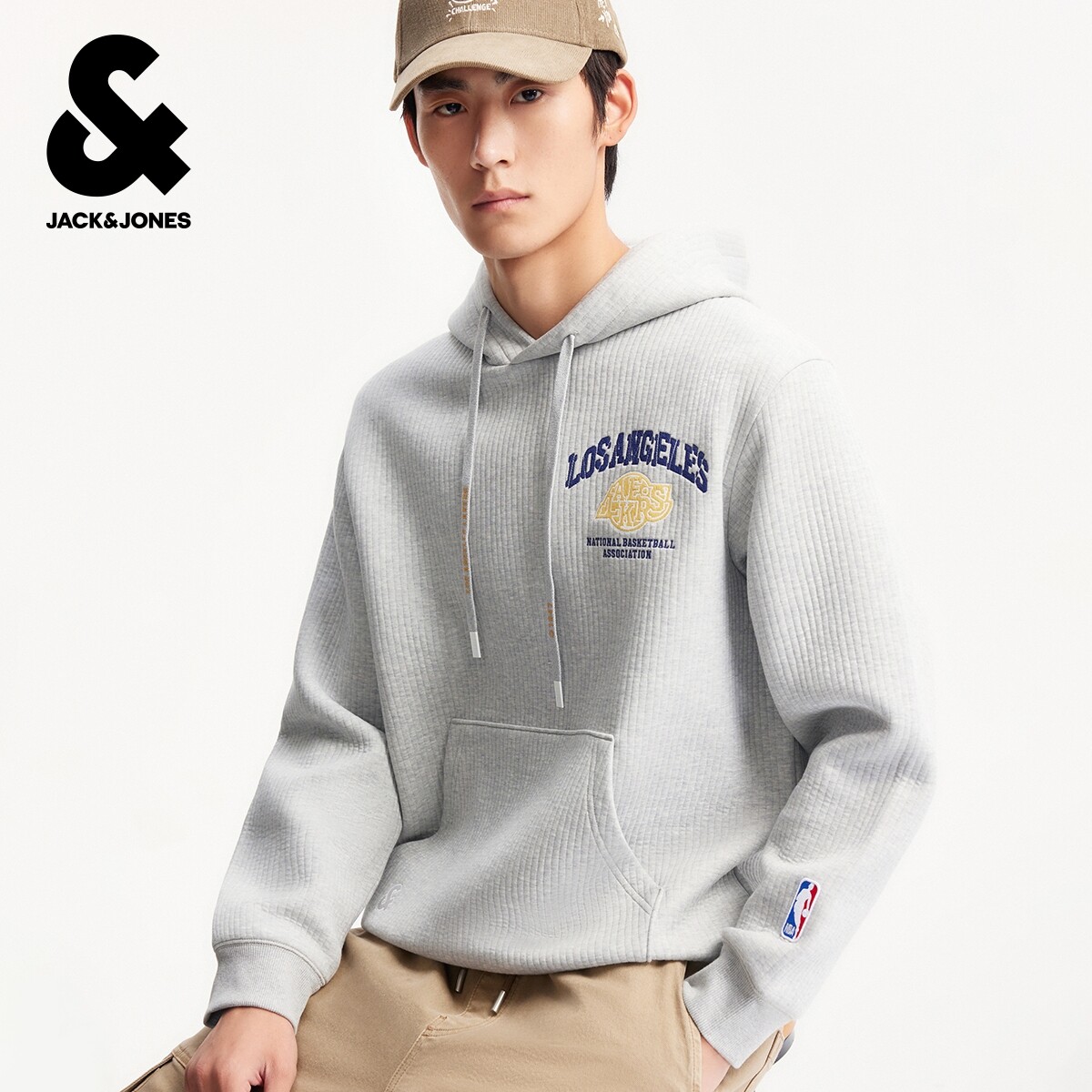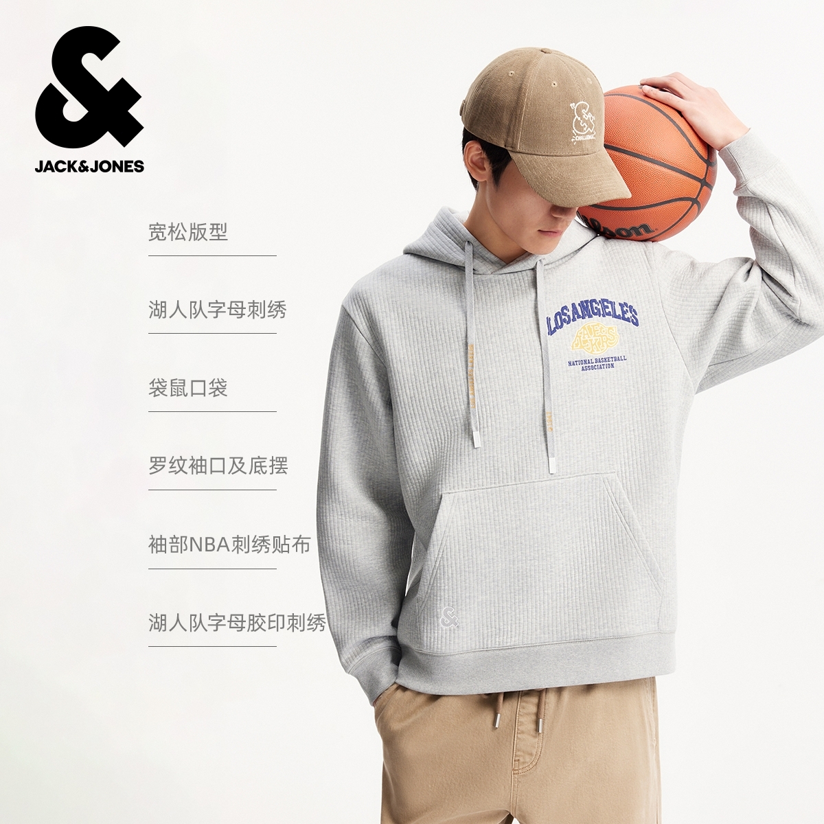 杰克琼斯春季男装卫衣宽松版型NBA联名湖人队字母刺绣袋鼠口袋