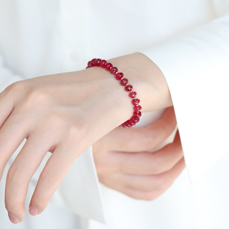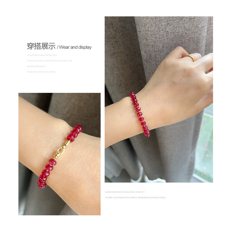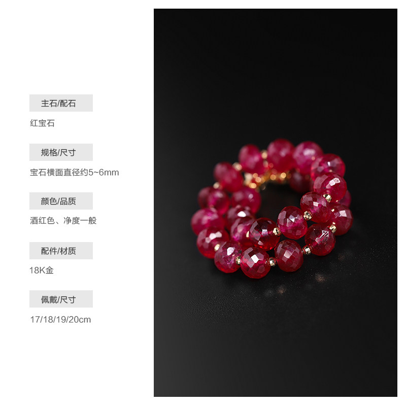 若华珠宝朝颜=满天星酒红色红宝石手链女18k金手饰彩宝手串礼物
