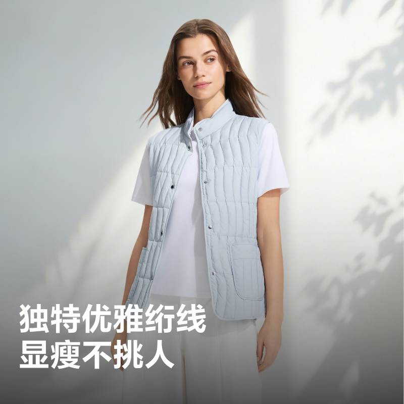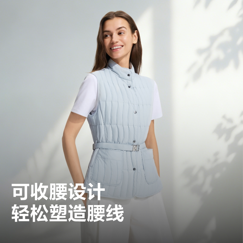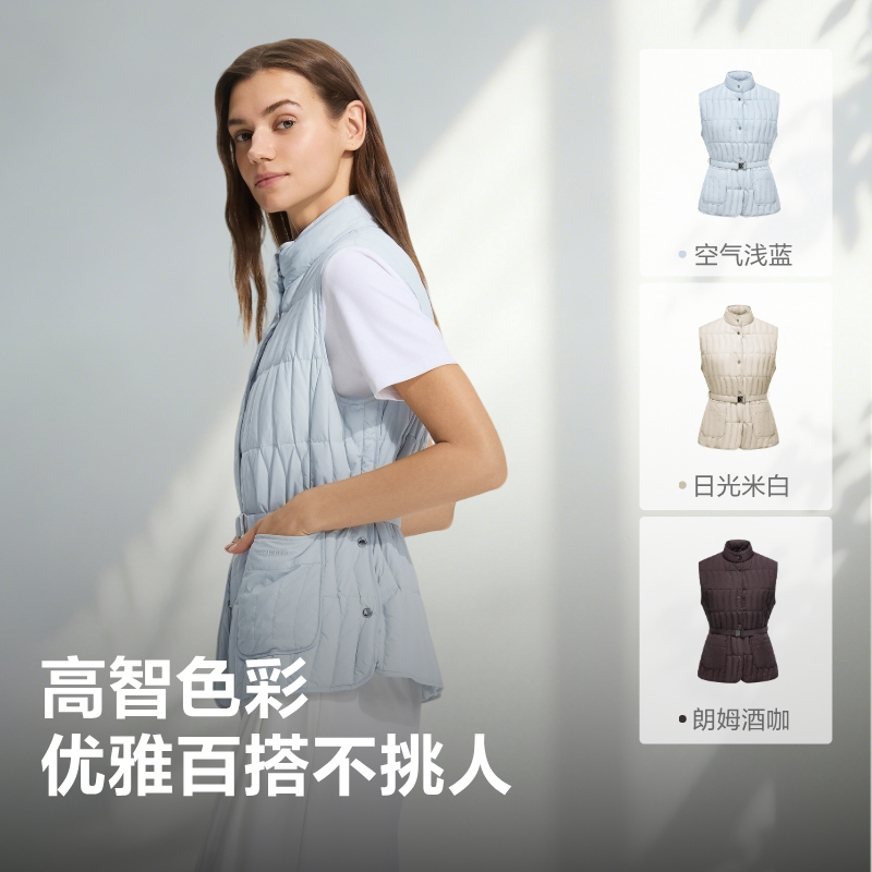 高蓬鹅绒|波司登26新款羽绒服女显瘦马甲老钱轻薄叠穿收腰立领短