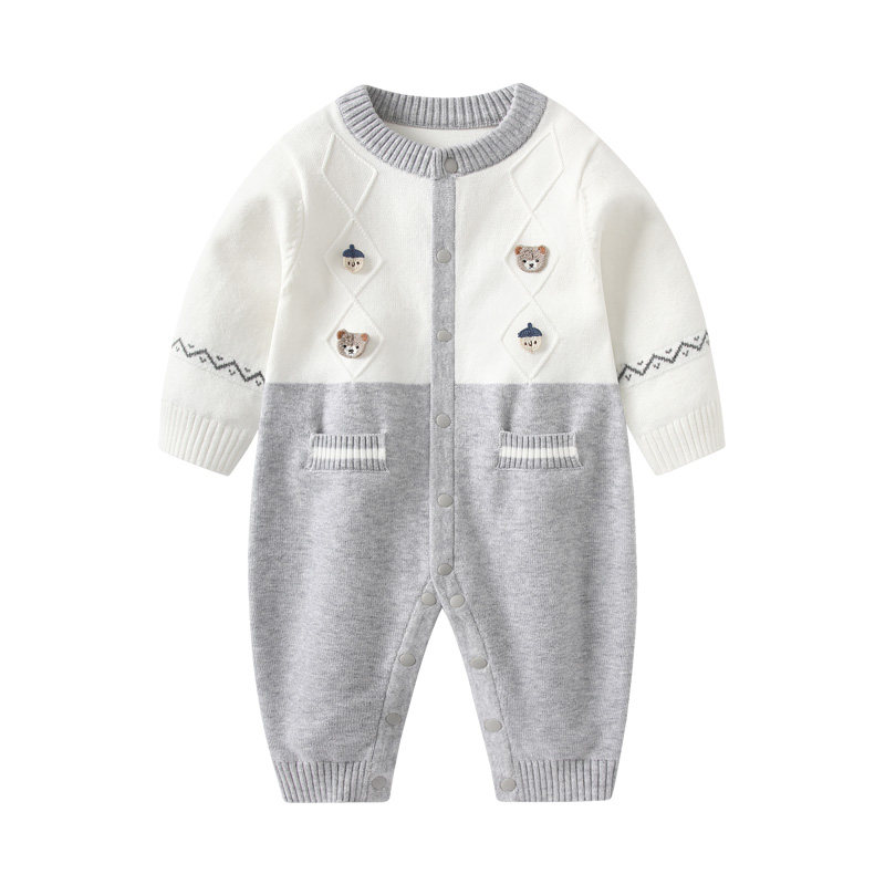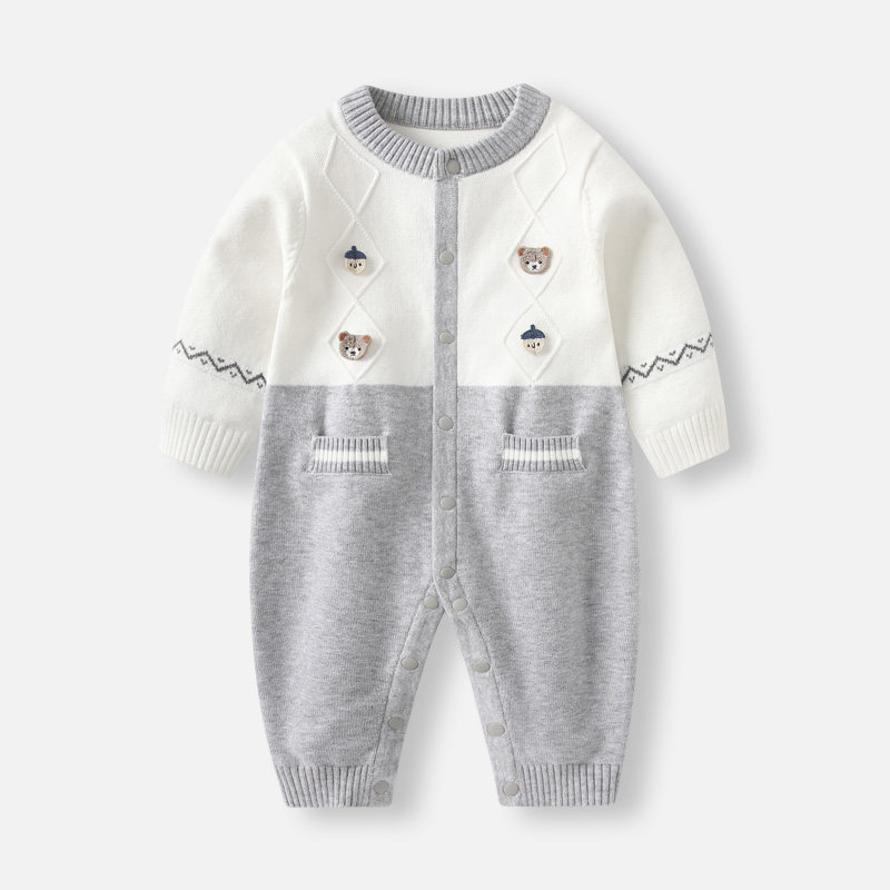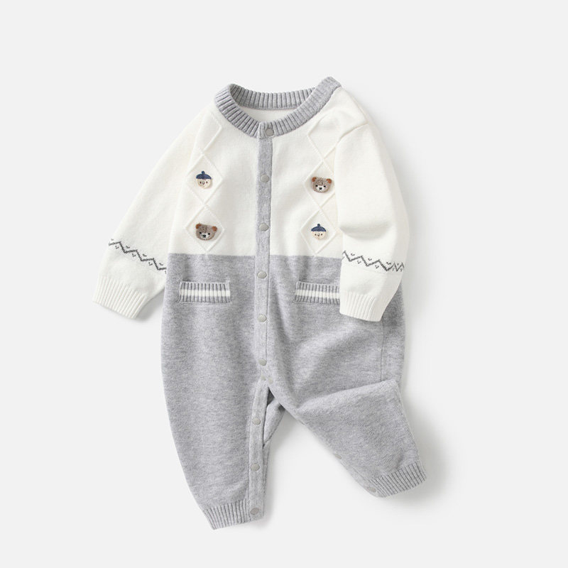 婴儿衣服春装2026新款针织连体衣新生男宝宝哈衣小月龄春季爬爬服