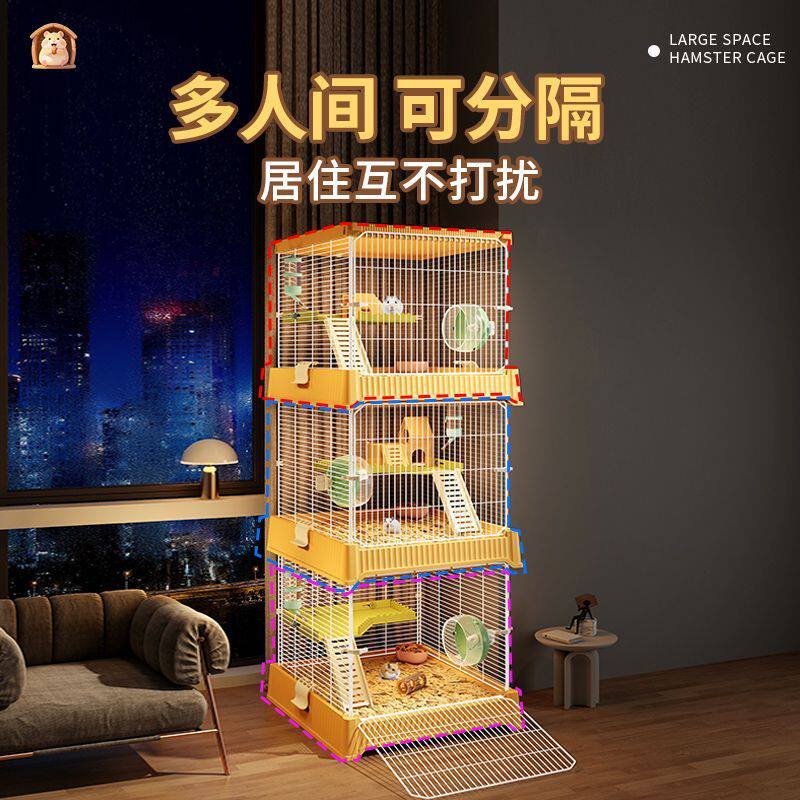 仓鼠笼子双人间分开特大号可分隔银狐三线公婆紫仓布丁鼠二层别墅