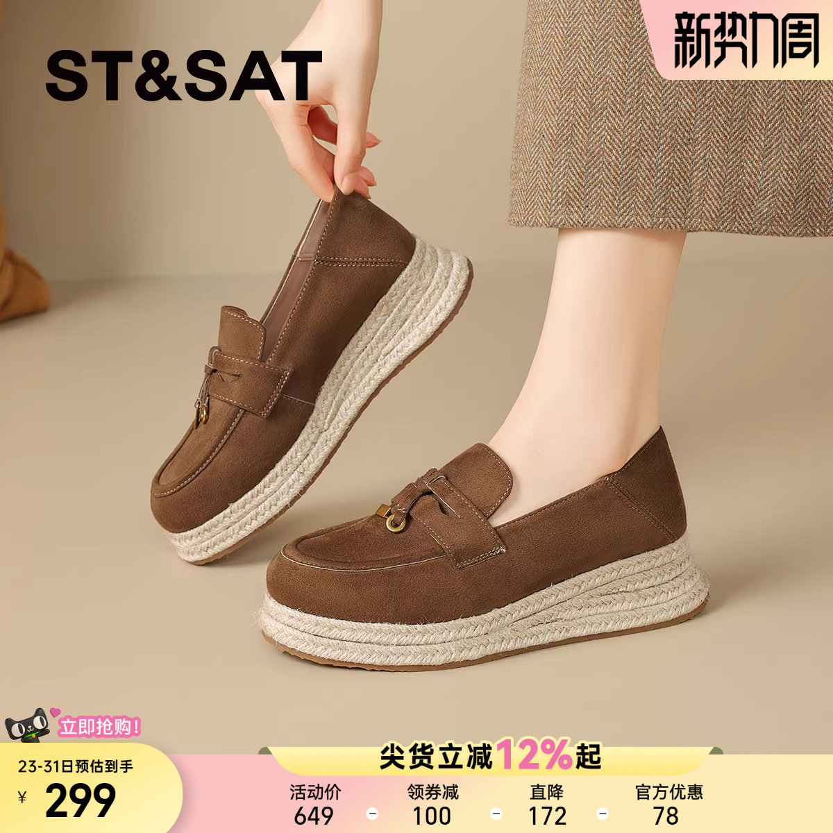 星期六真皮牛皮乐福鞋女鞋2025新款一脚蹬软底软面厚底英伦小皮鞋
