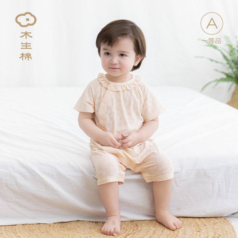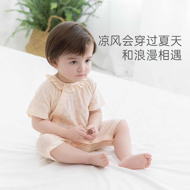 【舒爽棉】女宝宝短袖连体衣夏季薄款婴儿透气哈衣弹力爬服睡衣服